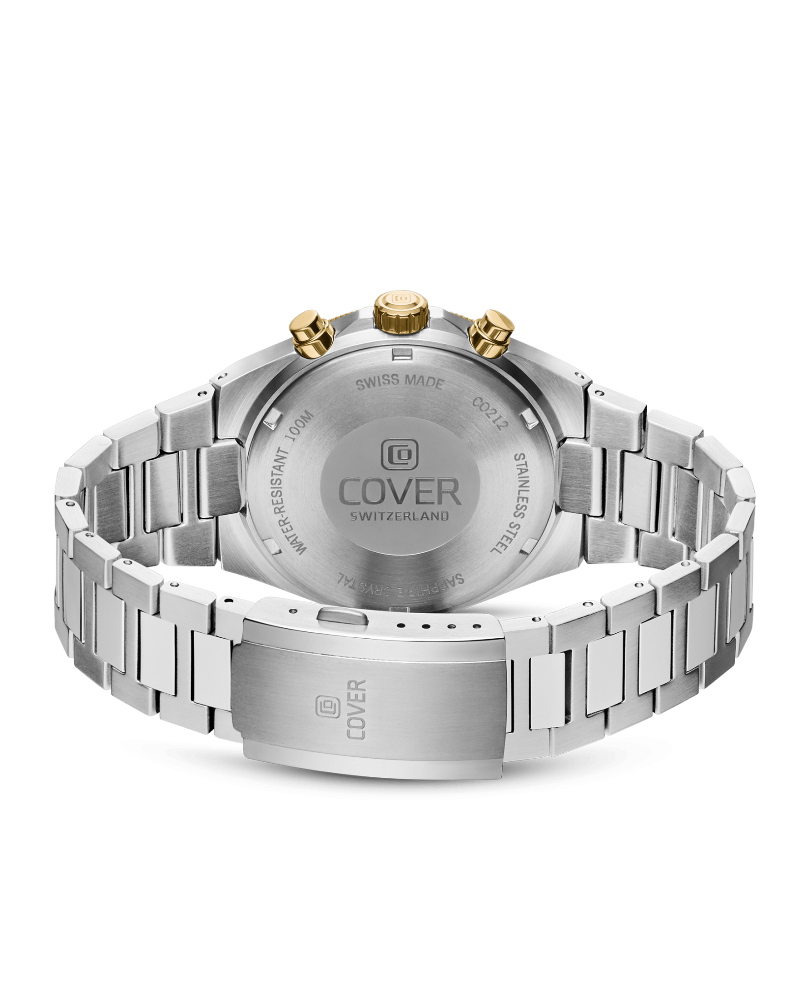 Мужские наручные часы-хронографХронографФункция позволяет измерять отрезки времени с особой точностью: часы, минуты, секунды. Верным признаком хронографа является наличие на циферблате 3 дополнительных окошек-счётчиков. Cover CO212.04 из коллекции Iconosteel сочетают в себе классический дизайн и надежность современных технологий. Модель обладает круглым корпусом диаметром 41 мм, изготовленным из нержавеющей стали с частичным PVD-покрытиемPVDУльтратонкое покрытие наносится в технике вакуумного напыления, сочетает в себе нитрид титана особой прочности со слоем золота или оксида хрома. Несёт в себе декоративную или защитную функцию., что обеспечивает высокую устойчивость к внешним воздействиям. Браслет выполнен из нержавеющей стали с раскладной застёжкойРаскладная застёжкаТакой тип застёжки используется только на браслетах из металла. Она никогда не раскрывается полностью, происходит разделение на 2 и более частей. Раскладывающая застёжка снизит вероятность потери часов к минимуму., гарантирующей комфортное ношение и безопасность. Синий циферблат оснащен  окном даты на «4 часах» и стрелками с люминесцентным покрытиемЛюминесцентное покрытиеПозволяет считывать показания времени в темноте. Производители наносят на стрелки, часовые индексы, безель или поверхность циферблата светонакопительный состав, дающий холодное свечение.. Для защиты используется сапфировое стеклоСапфировое стеклоПрочный и надёжный материал из кристалла сапфира синтетического происхождения, характеризующийся особой твёрдостью и устойчивостью к царапинам и повреждениям., обеспечивающее прочную защиту от царапин и антибликовый эффект. Часы работают на кварцевом механизме, что гарантирует точное время без необходимости подзаводки. Модель также является хронографом, оснащенным функцией секундомераСекундомерСекундоме́р — прибор, способный измерять интервалы времени с точностью до долей секунды., делая ее идеальной для активного образа жизни. Водонепроницаемость часов достигает 10 атмосфер (100 метров), что позволяет использовать их во время плавания и других водных видов спорта, однако не рекомендуется для глубоководного дайвинга.