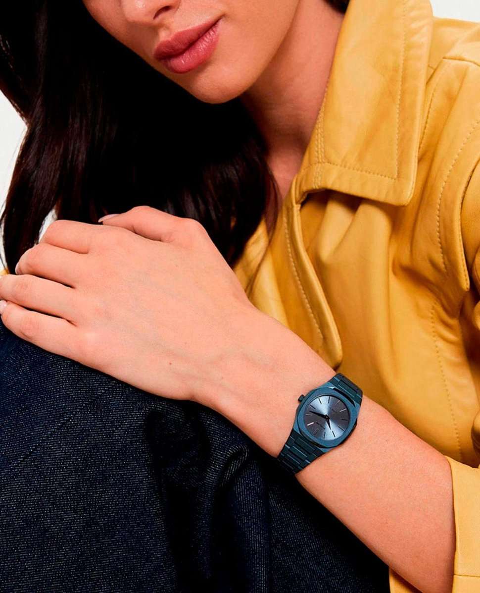 Женские наручные часы D1 Milano UTBL33 из коллекции Ultra Thin сочетают в себе элегантный дизайн и современные технологии. Модель обладает круглым корпусом диаметром 30 мм, изготовленным из нержавеющей стали с PVD-покрытиемPVDУльтратонкое покрытие наносится в технике вакуумного напыления, сочетает в себе нитрид титана особой прочности со слоем золота или оксида хрома. Несёт в себе декоративную или защитную функцию. синего цвета, что обеспечивает высокую устойчивость к внешним воздействиям. Для защиты циферблата используется сапфировое стеклоСапфировое стеклоПрочный и надёжный материал из кристалла сапфира синтетического происхождения, характеризующийся особой твёрдостью и устойчивостью к царапинам и повреждениям., которое эффективно противостоит царапинам и механическим повреждениям. Часы оснащены кварцевым механизмом Miyota 1L22, гарантирующим точное время без необходимости подзаводки. Водонепроницаемость модели достигает 5 атмосфер (50 метров), что позволяет использовать их при контакте с водой, например, во время мытья рук или дождя. Браслет выполнен из того же материала с раскладной застежкойРаскладной замокДанный вариант застежки используется только на часах с металлическим браслетом. Отличительная особенность такого крепления в том, что длина браслета становится универсальной и вы можете самостоятельно отрегулировать нужный вам размер – застежка просто двигается по браслету часов., обеспечивающей комфортное ношение и безопасность. Циферблат с узором синего цвета придает часам особую изысканность и делает их идеальным выбором для повседневного использования или особых случаев.