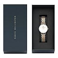 Женские наручные часы с минеральным стекломМинеральное стеклоМинеральное стекло представляет собой искусственно выращенный минерал кварца. Такое стекло отличается особой устойчивостью к повреждениям и царапинам. Уступает по некоторым качествам сапфировому стеклу. Daniel Wellington Petite DW00100616, кварцевый механизм с высокой точностью. Корпус часов изготовлен из стали. Циферблат украшен 12 кристаллами Swarovski. Класс водозащиты: 30 метров, позволит защитить корпус от случайных брызг или капель дождя. Стальной браслет с частичным застёжке-бабочке с кнопкамиЗастёжка "бабочка"Такой вид застёжки дополняется предохранителями, помогающими избежать случайного раскрытия браслета. Обладают изящным исполнением. PVDУльтратонкое покрытие наносится в технике вакуумного напыления, сочетает в себе нитрид титана особой прочности со слоем золота или оксида хрома. Несёт в себе декоративную или защитную функцию.