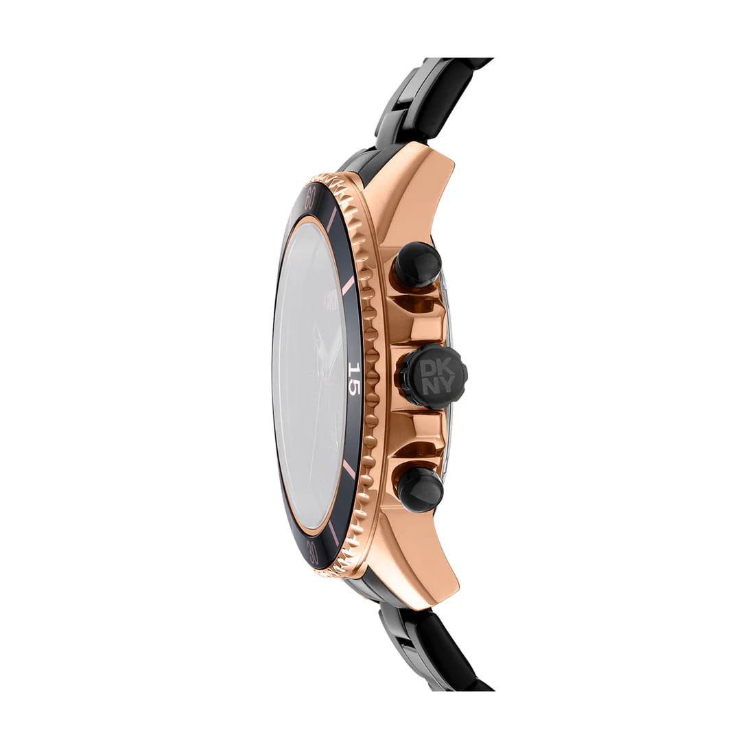Мужские наручные часы DKNY Central Park Sport DK1G072M0065 — сочетание урбанистического динамизма и спортивной надежности. Корпус из нержавеющей стали диаметром 42 мм и минеральное стеклоМинеральное стеклоМинеральное стекло представляет собой искусственно выращенный минерал кварца. Такое стекло отличается особой устойчивостью к повреждениям и царапинам. Уступает по некоторым качествам сапфировому стеклу. обеспечивает защиту от царапин, а водонепроницаемость до 100 метров делает модель практичной для активного отдыха или повседневной носки. Хронограф и встроенный календарь подчеркивают функциональность. Стальной браслет с IP-покрытиемIP-покрытиеМетод ионного напыления. Демонстрирует повышенную устойчивость к истиранию, окислению и химическим веществам. Под воздействием высокого давления и температуры около 1500°C молекулы металла надёжно соединяются с частицами корпуса часов. на раскладной застёжкеРаскладная застёжкаТакой тип застёжки используется только на браслетах из металла. Она никогда не раскрывается полностью, происходит разделение на 2 и более частей. Раскладывающая застёжка снизит вероятность потери часов к минимуму. добавляет элегантности. Циферблат с люминесцентным покрытиемЛюминесцентное покрытиеПозволяет считывать показания времени в темноте. Производители наносят на стрелки, часовые индексы, безель или поверхность циферблата светонакопительный состав, дающий холодное свечение. для четкой видимости, где рельефные индексные метки и стрелки обеспечивают мгновенную считываемость времени даже в условиях слабой освещенности.
