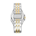 DKNY Brooklyn Maxi DK1L011M0075 — женские кварцевые часы в духе нью-йоркского урбанизма, сочетающие смелый дизайн и функциональность. Корпус из нержавеющей стали диаметром 36 мм и минеральное стеклоМинеральное стеклоМинеральное стекло представляет собой искусственно выращенный минерал кварца. Такое стекло отличается особой устойчивостью к повреждениям и царапинам. Уступает по некоторым качествам сапфировому стеклу. обеспечивает защиту от царапин, а водонепроницаемость до 50 метров делает модель практичной для активного отдыха или повседневной носки. Металлический браслет с IP-покрытиемIP-покрытиеМетод ионного напыления. Демонстрирует повышенную устойчивость к истиранию, окислению и химическим веществам. Под воздействием высокого давления и температуры около 1500°C молекулы металла надёжно соединяются с частицами корпуса часов. на раскладной застёжкеРаскладная застёжкаТакой тип застёжки используется только на браслетах из металла. Она никогда не раскрывается полностью, происходит разделение на 2 и более частей. Раскладывающая застёжка снизит вероятность потери часов к минимуму. подчеркивает универсальность, сочетаясь с деловыми и повседневными образами. БезельБезельВнешний ободок, закрепляющий стекло. В спортивных часах так называется поворотное кольцо с делениями на циферблате, выполняет роль таймера – замеряет отрезки времени на шкале. Неподвижный безель – элемент декора. Однонаправленно вращающийся безель на дайверских часах позволяет фиксировать моменты погружения и выныривания на поверхность. инкрустирован кристаллами. Лаконичные линии, акцент на крупном формате и практичность делают модель идеальным выбором для женщин, ценящих дерзкий городской образ, сочетающий энергию мегаполиса с универсальной элегантностью.