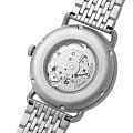 Сквозь прозрачное окошко на циферблате можно наблюдать за работой механизма часов В механизме 21 камень 12-ти и 24-х часовой формат времени Время в 24-х часовом формате отсчитывается на вращающемся диске и вынесено на отдельный циферблат Секунды отсчитываются на вращающемся диске и вынесены на отдельный циферблат Прозрачная задняя крышка Часовой механизм декорирован «женевскими волнами» (Cotes de Geneve) Ремешок из нержавеющей стали.
