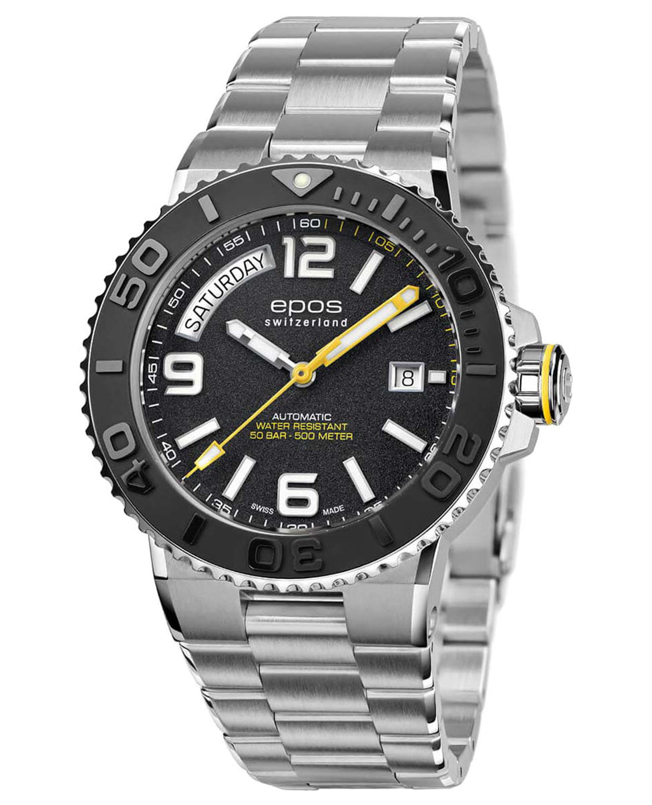 Мужские швейцарские механические часы с сапфировым стекломСапфировое стеклоПрочный и надёжный материал из кристалла сапфира синтетического происхождения, характеризующийся особой твёрдостью и устойчивостью к царапинам и повреждениям. Epos 3441.142.20.95.30. Изысканные часы с круглым корпусом. Доступный взору механизм и строгий дизайн подчеркивает их сдержанный характер. Особенный корпус для дайверов с водонепроницаемостью в 50 атмосфер. Люминесцентная подсветкаЛюминесцентное покрытиеПозволяет считывать показания времени в темноте. Производители наносят на стрелки, часовые индексы, безель или поверхность циферблата светонакопительный состав, дающий холодное свечение. стрелок и меток. Раскладная застёжкаРаскладная застёжкаТакой тип застёжки используется только на браслетах из металла. Она никогда не раскрывается полностью, происходит разделение на 2 и более частей. Раскладывающая застёжка снизит вероятность потери часов к минимуму..