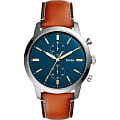 Наручные часы от популярного американского бренда Fossil - они будут замечательно смотреться как с повседневным стилем одежды, так и костюмом; браслет: кожа; корпус: сталь; цвет браслета: коричневый; цвет корпуса: серебро; цвет циферблата: синий; ширина браслета: 22MM;