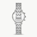 Женские американские часы-хронографХронографФункция позволяет измерять отрезки времени с особой точностью: часы, минуты, секунды. Верным признаком хронографа является наличие на циферблате 3 дополнительных окошек-счётчиков. с секундомеромСекундомерСекундоме́р — прибор, способный измерять интервалы времени с точностью до долей секунды. Fossil Neutra ES5217, кварцевый механизм с высокой точностью. Класс водозащиты: 50 метров, позволит защитить корпус от случайных брызг или капель дождя. Корпус часов изготовлен из стали. Стальной браслет с раскладной застёжкойРаскладная застёжкаТакой тип застёжки используется только на браслетах из металла. Она никогда не раскрывается полностью, происходит разделение на 2 и более частей. Раскладывающая застёжка снизит вероятность потери часов к минимуму.. Система отображения времени 12-ти и 24-х часового формата. БезельБезельВнешний ободок, закрепляющий стекло. В спортивных часах так называется поворотное кольцо с делениями на циферблате, выполняет роль таймера – замеряет отрезки времени на шкале. Неподвижный безель – элемент декора. Однонаправленно вращающийся безель на дайверских часах позволяет фиксировать моменты погружения и выныривания на поверхность. украшен кристаллами. Окошко даты между 4 и 5 часами. БезельБезельВнешний ободок, закрепляющий стекло. В спортивных часах так называется поворотное кольцо с делениями на циферблате, выполняет роль таймера – замеряет отрезки времени на шкале. Неподвижный безель – элемент декора. Однонаправленно вращающийся безель на дайверских часах позволяет фиксировать моменты погружения и выныривания на поверхность. инкрустирован кристаллами.