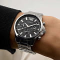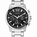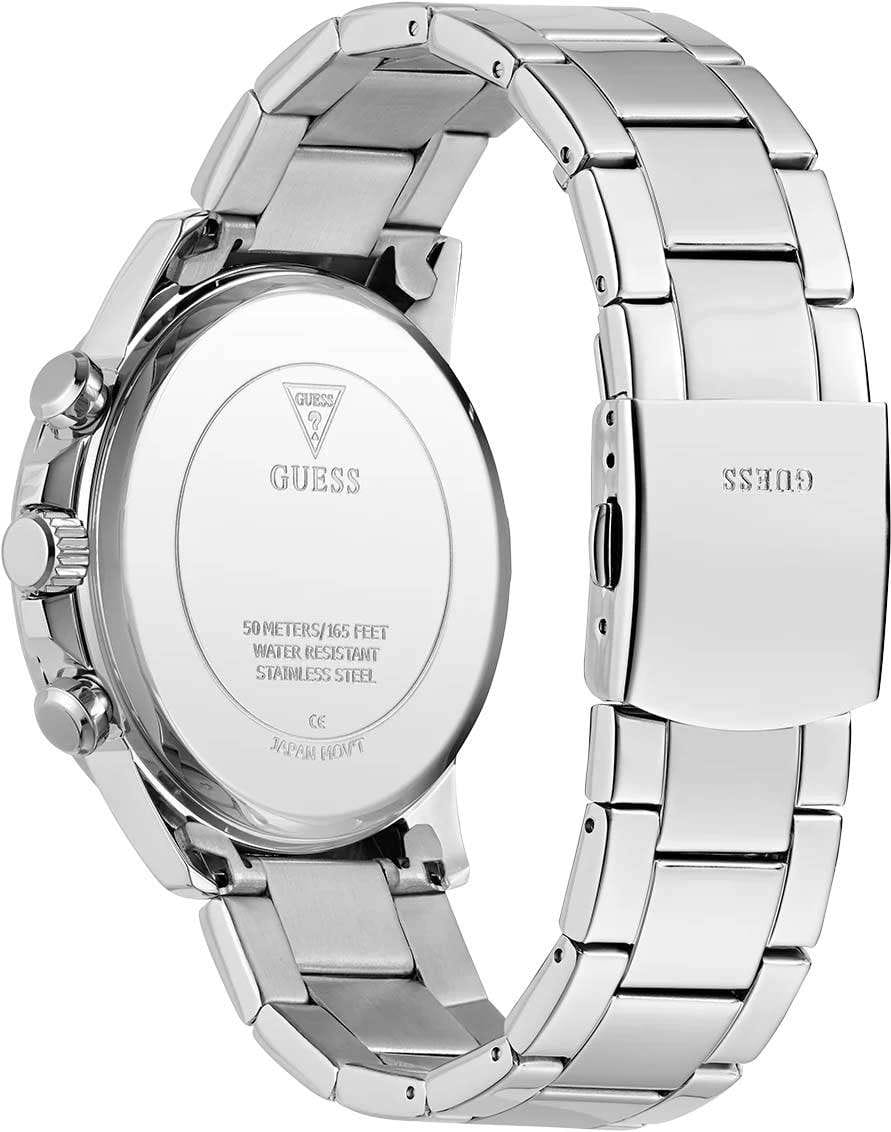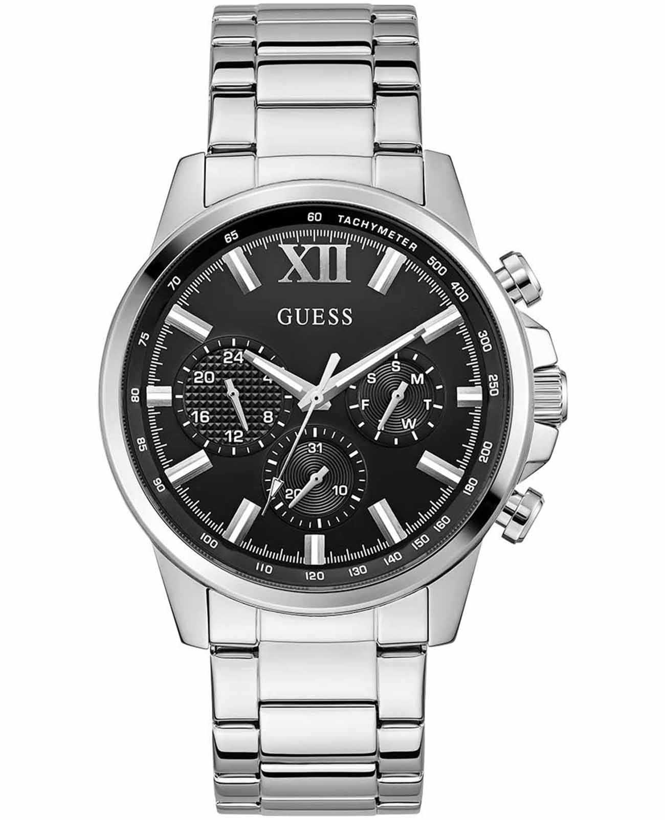 Стильные и функциональные часы Guess GW0900G1 оснащены кварцевым механизмом, что обеспечивает точность и надежность в использовании. Корпус выполнен из прочной стали с полированной поверхностью, придающей изделиям утонченный и современный вид. Черный циферблат украшен метками в виде штрихов и римской цифрой XII, обеспечивающими легкое считывание времени. Время отображается в двух форматах — 12-ти и 24-х часовом, что удобно для тех, кто привык к разным системам времени. Дополнительные циферблаты показывают дату и день недели, что позволяет всегда быть в курсе текущей даты без необходимости использования других устройств. Часы также оснащены тахиметромТахиметрРазмеченная шкала, располагается на ободке или безеле часов. Тахиметр позволяет рассчитать скорость на определённом участке пути, расстояние измеряется в километрах или милях., что добавляет им функциональности и может быть полезно для измерения скорости. Люминесцентное покрытиеЛюминесцентное покрытиеПозволяет считывать показания времени в темноте. Производители наносят на стрелки, часовые индексы, безель или поверхность циферблата светонакопительный состав, дающий холодное свечение. на стрелках и метках обеспечивает отличную видимость в темноте. Минеральное стеклоМинеральное стеклоМинеральное стекло представляет собой искусственно выращенный минерал кварца. Такое стекло отличается особой устойчивостью к повреждениям и царапинам. Уступает по некоторым качествам сапфировому стеклу. защищает циферблат от царапин и повреждений, а водозащита 50WR позволяет не волноваться о случайных контактах с водой, например, во время дождя. Браслет из стали оснащен раскладной застежкойРаскладная застёжкаТакой тип застёжки используется только на браслетах из металла. Она никогда не раскрывается полностью, происходит разделение на 2 и более частей. Раскладывающая застёжка снизит вероятность потери часов к минимуму., обеспечивающей надежную фиксацию часов на руке и комфорт в ношении. Рифленая заводная головка с защитой добавляет изысканности и одновременно защищает механизм от повреждений. Эти часы идеально подойдут для тех, кто ценит стиль, функциональность и качество в одном аксессуаре.