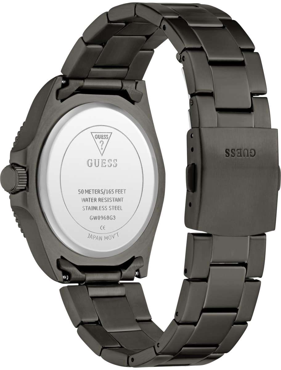 Часы Guess Sport Cliff GW0968G3 — это изысканный аксессуар, который добавит вашему современному образу нотку гламура и элегантности. Часы оснащены надежным кварцевым механизмом, который обеспечивает точность и долговечность. Круглый стальной корпус с IP-покрытиемIP-покрытиеМетод ионного напыления. Демонстрирует повышенную устойчивость к истиранию, окислению и химическим веществам. Под воздействием высокого давления и температуры около 1500°C молекулы металла надёжно соединяются с частицами корпуса часов. диаметром 41 мм и с поворотным безелемБезельВнешний ободок, закрепляющий стекло. В спортивных часах так называется поворотное кольцо с делениями на циферблате, выполняет роль таймера – замеряет отрезки времени на шкале. Неподвижный безель – элемент декора. Однонаправленно вращающийся безель на дайверских часах позволяет фиксировать моменты погружения и выныривания на поверхность.  придает часам стильный и современный вид. Циферблат создает утонченное и изысканное впечатление. Люминесцентное покрытиеЛюминесцентное покрытиеПозволяет считывать показания времени в темноте. Производители наносят на стрелки, часовые индексы, безель или поверхность циферблата светонакопительный состав, дающий холодное свечение. на часах обеспечивает отличную видимость в темноте. Часы оснащены рифленой заводной головкой для удобного управления.Стальной браслет с IP-покрытиемIP-покрытиеМетод ионного напыления. Демонстрирует повышенную устойчивость к истиранию, окислению и химическим веществам. Под воздействием высокого давления и температуры около 1500°C молекулы металла надёжно соединяются с частицами корпуса часов. на раскладной застёжкеРаскладная застёжкаТакой тип застёжки используется только на браслетах из металла. Она никогда не раскрывается полностью, происходит разделение на 2 и более частей. Раскладывающая застёжка снизит вероятность потери часов к минимуму. добавляет модели элегантности и удобства, подчеркивая вашу индивидуальность и стиль. Водозащита 50WR позволит мыть руки или гулять под дождем, не опасаясь того, что в корпус попадет вода, а минеральное стеклоМинеральное стеклоМинеральное стекло представляет собой искусственно выращенный минерал кварца. Такое стекло отличается особой устойчивостью к повреждениям и царапинам. Уступает по некоторым качествам сапфировому стеклу. защищает циферблат от царапин. Эта модель станет идеальным аксессуаром для ежедневного использования и особых мероприятий, подчеркивая вашу индивидуальность и стиль.
