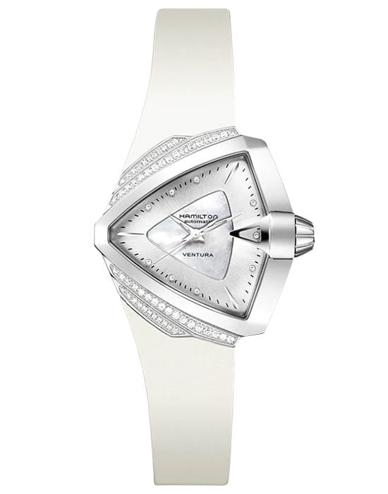 Женские швейцарские часы с бриллиантами Hamilton Ventura H24255359, кварцевый механизм с высокой точностью. Сапфировое стекло устойчивое к появлению царапин, обладающее высокой прозрачностью. Класс водозащиты: 50 метров, позволит защитить корпус от случайных брызг или капель дождя. Корпус часов изготовлен из стали, серебристого цвета.