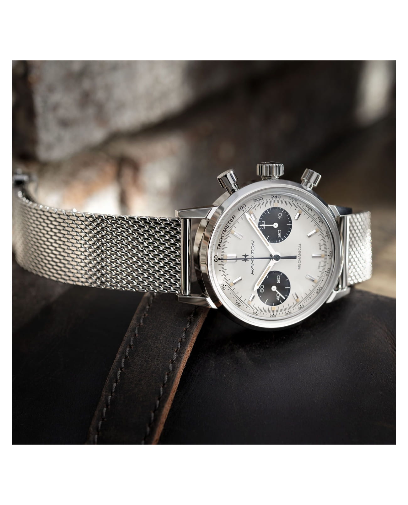 Почувствуйте дыхание часового искусства при каждом заводе Hamilton American Classic Intra-Matic Chronograph H H38429110. Модель, оснащенная механизмом хронографа с ручным заводом H-51, воплощает собой часы с душой. Выпуклое сапфировое стекло с двусторонним антибликовым покрытием защищает фирменный циферблат окраски «панда», который придает механической версии винтажного изделия особую аутентичность.