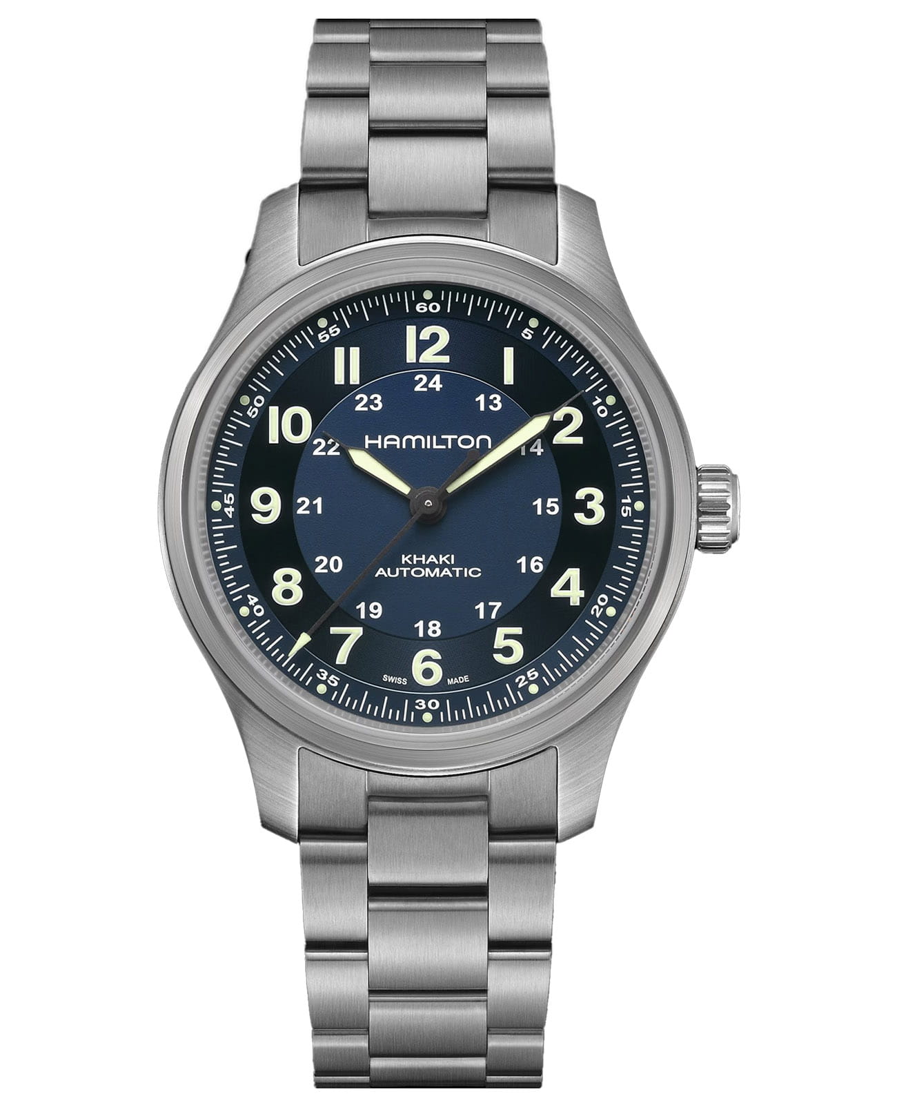 Универсальные часы Khaki Field Titanium с корпусом диаметром 42 мм и браслетом из титана подойдут к любому стилю и образу. Циферблат синего цвета отличается идеальной считываемостью показаний и поможет вам не пропустить ни одного приключения, а браслет с пескоструйной обработкой придает дизайну в стиле милитари прочность и узнаваемый характер. Легкая и функциональная модель Khaki Field Titanium в стиле милитари станет вашим надежным спутником в погоне за новыми впечатлениями.