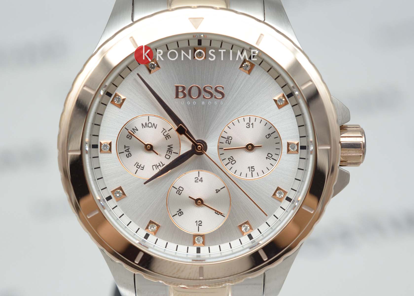 Элегантные женские часы Hugo Boss Premiere HB1502446 из коллекции представлены в стальном корпусе диаметром 38 мм с эффектным циферблатом, защищённым прочным минеральным стекломМинеральное стеклоМинеральное стекло представляет собой искусственно выращенный минерал кварца. Такое стекло отличается особой устойчивостью к повреждениям и царапинам. Уступает по некоторым качествам сапфировому стеклу.. Модель оснащена точным кварцевым механизмом с полезными функциями: день недели, дата, второй часовой поясВторой часовой поясФункция, позволяющая отображать время двух часовых поясов одновременно. в 24-часовом формате. Спортивный характер подчёркивает поворотный безельБезельВнешний ободок, закрепляющий стекло. В спортивных часах так называется поворотное кольцо с делениями на циферблате, выполняет роль таймера – замеряет отрезки времени на шкале. Неподвижный безель – элемент декора. Однонаправленно вращающийся безель на дайверских часах позволяет фиксировать моменты погружения и выныривания на поверхность. из стали c IP-покрытиемIP-покрытиеМетод ионного напыления. Демонстрирует повышенную устойчивость к истиранию, окислению и химическим веществам. Под воздействием высокого давления и температуры около 1500°C молекулы металла надёжно соединяются с частицами корпуса часов., а стальной браслет IP-покрытиемIP-покрытиеМетод ионного напыления. Демонстрирует повышенную устойчивость к истиранию, окислению и химическим веществам. Под воздействием высокого давления и температуры около 1500°C молекулы металла надёжно соединяются с частицами корпуса часов. и с раскладной застежкойРаскладная застёжкаТакой тип застёжки используется только на браслетах из металла. Она никогда не раскрывается полностью, происходит разделение на 2 и более частей. Раскладывающая застёжка снизит вероятность потери часов к минимуму. гарантирует комфортное ношение и надежную фиксацию.Эта элегантная модель с 12 кристаллами Swarovski с водонепроницаемостью 50 метров делает часы устойчивыми к повседневным нагрузкам. Эти часы сочетают в себе превосходное качество и изысканность. Они станут отличным выбором для тех, кто ценит стильный дизайн и функциональность в одном аксессуаре, подходят для ежедневного использования.