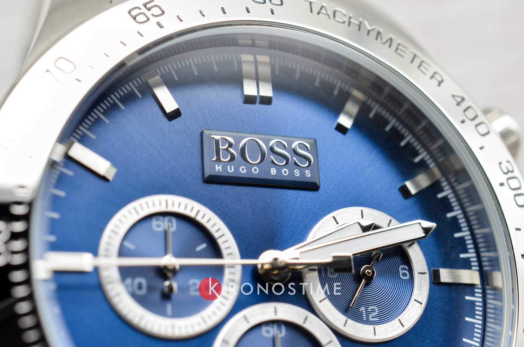 Мужские кварцевые часы Hugo Boss Ikon HB1512963 представляют собой стильный хронографХронографФункция позволяет измерять отрезки времени с особой точностью: часы, минуты, секунды. Верным признаком хронографа является наличие на циферблате 3 дополнительных окошек-счётчиков. с круглым корпусом диаметром 44 мм из нержавеющей стали, дополненным черным циферблатом с серебристыми стрелками и индексами. Модель оснащена высокоточным кварцевым механизмом с функцией хронографаХронографФункция позволяет измерять отрезки времени с особой точностью: часы, минуты, секунды. Верным признаком хронографа является наличие на циферблате 3 дополнительных окошек-счётчиков., включая 60-минутный счетчик и 24-часовой индикатор, а также тахиметрической шкалойТахиметрРазмеченная шкала, располагается на ободке или безеле часов. Тахиметр позволяет рассчитать скорость на определённом участке пути, расстояние измеряется в километрах или милях. на безэлеБезельВнешний ободок, закрепляющий стекло. В спортивных часах так называется поворотное кольцо с делениями на циферблате, выполняет роль таймера – замеряет отрезки времени на шкале. Неподвижный безель – элемент декора. Однонаправленно вращающийся безель на дайверских часах позволяет фиксировать моменты погружения и выныривания на поверхность. для расчетов скорости. Циферблат защищен устойчивым к царапинам минеральным стекломМинеральное стеклоМинеральное стекло представляет собой искусственно выращенный минерал кварца. Такое стекло отличается особой устойчивостью к повреждениям и царапинам. Уступает по некоторым качествам сапфировому стеклу., а водонепроницаемость 5 ATM (50 метров) обеспечивает защиту от брызг и дождя. Глубокий синий циферблат с люминесцентным покрытиемЛюминесцентное покрытиеПозволяет считывать показания времени в темноте. Производители наносят на стрелки, часовые индексы, безель или поверхность циферблата светонакопительный состав, дающий холодное свечение. на стрелках, обеспечивает отличную читаемость в любое время суток. Стальной браслет с раскладной застежкойРаскладная застёжкаТакой тип застёжки используется только на браслетах из металла. Она никогда не раскрывается полностью, происходит разделение на 2 и более частей. Раскладывающая застёжка снизит вероятность потери часов к минимуму. обеспечивает надежную посадку на запястье.