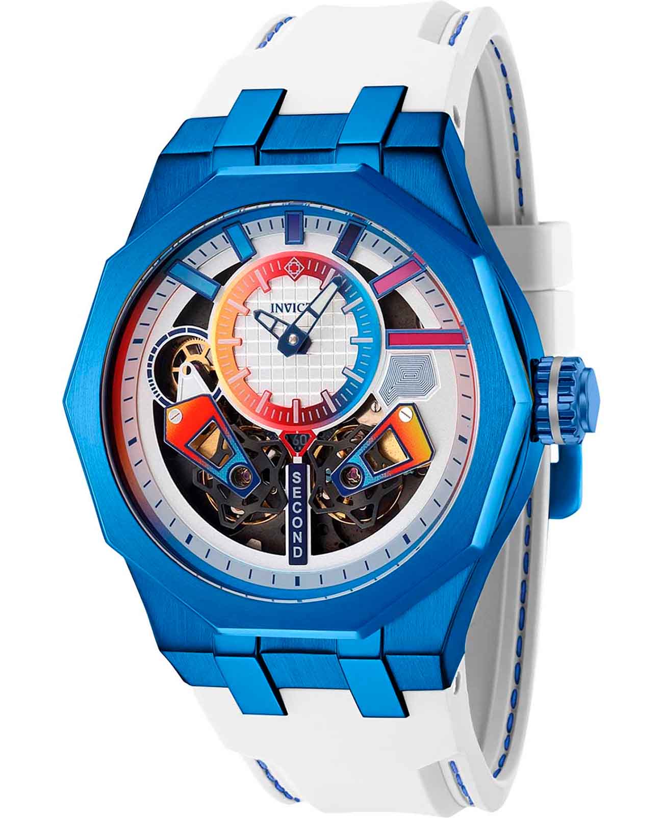 Мужские наручные часы Invicta Specialty IN43198 из коллекции Specialty сочетают в себе спортивный дизайн и надежность современных технологий. Модель обладает круглым корпусом диаметром 52 мм, выполненным из нержавеющей стали с IP-покрытиемIP-покрытиеМетод ионного напыления. Демонстрирует повышенную устойчивость к истиранию, окислению и химическим веществам. Под воздействием высокого давления и температуры около 1500°C молекулы металла надёжно соединяются с частицами корпуса часов., что обеспечивает высокую устойчивость к внешним воздействиям . Ремешок часов изготовлен из белого силикона, гарантируя комфортное ношение и безопасность . Циферблат дополнен индексными метками и светящимися стрелками с люминесцентным покрытиемЛюминесцентное покрытиеПозволяет считывать показания времени в темноте. Производители наносят на стрелки, часовые индексы, безель или поверхность циферблата светонакопительный состав, дающий холодное свечение., которые обеспечивают отличную видимость даже в темноте . На циферблате также присутствуют минутные деления по внешнему ободку, а также один малый циферблат для дополнительных функций . Для защиты используется минеральное стеклоМинеральное стеклоМинеральное стекло представляет собой искусственно выращенный минерал кварца. Такое стекло отличается особой устойчивостью к повреждениям и царапинам. Уступает по некоторым качествам сапфировому стеклу. Flame Fusion, которое обеспечивает прочность и устойчивость к царапинам . Часы оснащены автоматическим механизмом, что гарантирует точность хода без необходимости подзаводки . Водонепроницаемость модели достигает 100 метров (10 атмосфер), что позволяет использовать их во время плавания и других водных видов спорта, однако не рекомендуется для глубоководного дайвинга . Сочетание практичности, надежности и стильного дизайна делает эту модель универсальным аксессуаром как для повседневной носки, так и для занятий спортом .
