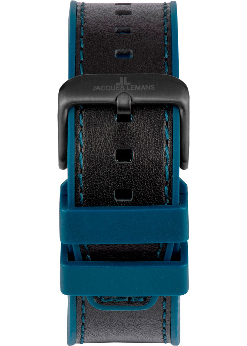Ремешок часов состоит из двух частей: верхняя сделана из натуральной кожи черного цвета, нижняя — из силикона, удобного современного материала, который не боится повышенной влажности.