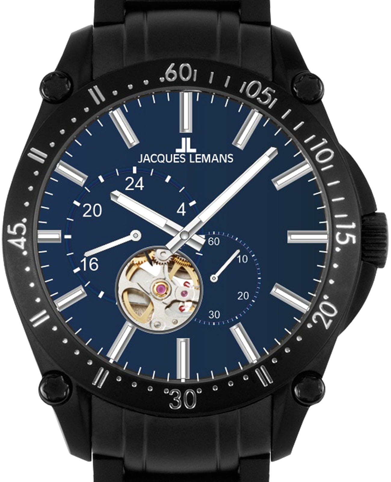 Мужские механические часы-скелетоны Jacques Lemans 1-2201G – лаконичная красота и изысканная элегантность. Оригинальная модель с классическим оформлением станет превосходным завершением образа, наделив его индивидуальным характером. Корпус выполнен из нержавеющей стали с PVD-покрытиемPVDУльтратонкое покрытие наносится в технике вакуумного напыления, сочетает в себе нитрид титана особой прочности со слоем золота или оксида хрома. Несёт в себе декоративную или защитную функцию. черного цвета, диаметром 44 мм, что обеспечивает долговечность и утончённый внешний вид. Минеральное стеклоМинеральное стеклоМинеральное стекло представляет собой искусственно выращенный минерал кварца. Такое стекло отличается особой устойчивостью к повреждениям и царапинам. Уступает по некоторым качествам сапфировому стеклу. с сапфировым напылением защищает циферблат от царапин. Стальной браслет с PVD-покрытиемPVDУльтратонкое покрытие наносится в технике вакуумного напыления, сочетает в себе нитрид титана особой прочности со слоем золота или оксида хрома. Несёт в себе декоративную или защитную функцию. на раскладной застёжкеРаскладная застёжкаТакой тип застёжки используется только на браслетах из металла. Она никогда не раскрывается полностью, происходит разделение на 2 и более частей. Раскладывающая застёжка снизит вероятность потери часов к минимуму. обеспечивает комфортное ношение. Водозащита 100 метров позволит плавать, нырять и заниматься другими водными видами спорта. Стрелки и метки с люминесцентным покрытиемЛюминесцентное покрытиеПозволяет считывать показания времени в темноте. Производители наносят на стрелки, часовые индексы, безель или поверхность циферблата светонакопительный состав, дающий холодное свечение. позволяющие легко определять время даже в темноте. БезельБезельВнешний ободок, закрепляющий стекло. В спортивных часах так называется поворотное кольцо с делениями на циферблате, выполняет роль таймера – замеряет отрезки времени на шкале. Неподвижный безель – элемент декора. Однонаправленно вращающийся безель на дайверских часах позволяет фиксировать моменты погружения и выныривания на поверхность. дополнен минутной шкалой. Запас хода 42 ч. На отдельные циферблаты вынесены индикатор 24-х часов и малая секундная стрелка. Сквозь прозрачное окошко можно наблюдать за работой механизма часов. Рифленая заводная головка с защитой. Это аксессуар для мужчины, который ценит классический стиль и функциональность.