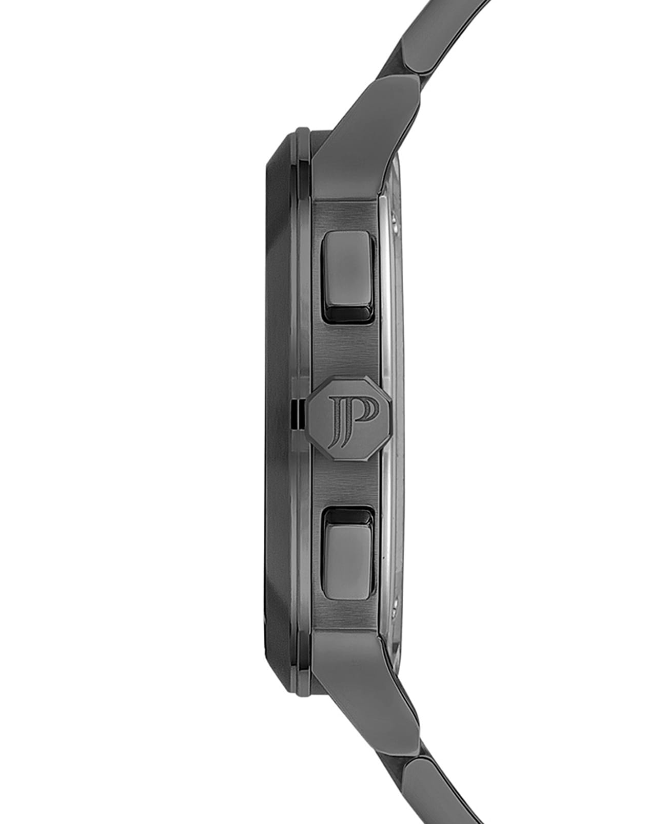 Швейцарские мужские часы-хронографХронографФункция позволяет измерять отрезки времени с особой точностью: часы, минуты, секунды. Верным признаком хронографа является наличие на циферблате 3 дополнительных окошек-счётчиков. с секундомеромСекундомерСекундоме́р — прибор, способный измерять интервалы времени с точностью до долей секунды. Jacques Philippe Round JPQGC178337, кварцевый механизм с высокой точностью. Сапфировое стеклоСапфировое стеклоПрочный и надёжный материал из кристалла сапфира синтетического происхождения, характеризующийся особой твёрдостью и устойчивостью к царапинам и повреждениям. устойчивое к появлению царапин, обладающее высокой прозрачностью. Корпус часов изготовлен из нержавеющей стали. На циферблате три дополнительных индикатора. Стрелки с люминесцентным покрытиемЛюминесцентное покрытиеПозволяет считывать показания времени в темноте. Производители наносят на стрелки, часовые индексы, безель или поверхность циферблата светонакопительный состав, дающий холодное свечение.. Окошко даты находится между 4 и 5 часами. Класс водозащиты: 50 метров, позволит защитить корпус от случайных брызг или капель дождя. Стальной браслет на застёжке «бабочка» с кнопкамиЗастёжка "бабочка"Такой вид застёжки дополняется предохранителями, помогающими избежать случайного раскрытия браслета. Обладают изящным исполнением. .
