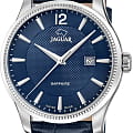 Jaguar J1042/3 из коллекции Acamar — элегантные мужские часы, сочетающие швейцарское качество и современный дизайн. Корпус диаметром 40 мм выполнен из нержавеющей стали, что обеспечивает прочность и долговечность. Сапфировое стеклоСапфировое стеклоПрочный и надёжный материал из кристалла сапфира синтетического происхождения, характеризующийся особой твёрдостью и устойчивостью к царапинам и повреждениям. защищает циферблат от царапин и повреждений. Синий циферблат с серебристыми стрелками подчёркивает изысканный стиль. Часы оснащены функцией индикации даты, расположенной в окошке на отметке «3 часа», что добавляет практичности. Ремешок из кожи гарантирует комфортное ношение. Классическая застёжка обеспечивает надёжную фиксацию на запястье. Водозащита до 5 ATM (50 метров) делает часы подходящими для повседневного использования. Jaguar J1042/3 — это идеальный выбор для мужчин, которые ценят классический дизайн и современные технологии.