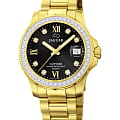 Женские швейцарские часы Jaguar Woman J895/4. Кварцевый швейцарский калибр Ronda 705. Сапфировое стеклоСапфировое стеклоПрочный и надёжный материал из кристалла сапфира синтетического происхождения, характеризующийся особой твёрдостью и устойчивостью к царапинам и повреждениям. устойчивое к мелким механическим повреждениям. Корпус и браслет часов изготовлены из нержавеющей стали с PVD-покрытиемPVDУльтратонкое покрытие наносится в технике вакуумного напыления, сочетает в себе нитрид титана особой прочности со слоем золота или оксида хрома. Несёт в себе декоративную или защитную функцию.. Стрелки с люминесцентным покрытиемЛюминесцентное покрытиеПозволяет считывать показания времени в темноте. Производители наносят на стрелки, часовые индексы, безель или поверхность циферблата светонакопительный состав, дающий холодное свечение.. Окошко даты находится в положении 3 часа. Класс водозащиты: 200 метров, позволит плавать, нырять и заниматься другими водными видами спорта. Стальной браслет с частичным PVD-покрытиемPVDУльтратонкое покрытие наносится в технике вакуумного напыления, сочетает в себе нитрид титана особой прочности со слоем золота или оксида хрома. Несёт в себе декоративную или защитную функцию. на раскладной застёжкеРаскладная застёжкаТакой тип застёжки используется только на браслетах из металла. Она никогда не раскрывается полностью, происходит разделение на 2 и более частей. Раскладывающая застёжка снизит вероятность потери часов к минимуму.. Циферблат украшен кристаллами в роли часовых индексов. БезельБезельВнешний ободок, закрепляющий стекло. В спортивных часах так называется поворотное кольцо с делениями на циферблате, выполняет роль таймера – замеряет отрезки времени на шкале. Неподвижный безель – элемент декора. Однонаправленно вращающийся безель на дайверских часах позволяет фиксировать моменты погружения и выныривания на поверхность. с PVD-покрытиемPVDУльтратонкое покрытие наносится в технике вакуумного напыления, сочетает в себе нитрид титана особой прочности со слоем золота или оксида хрома. Несёт в себе декоративную или защитную функцию. инкрустирован кристаллами.