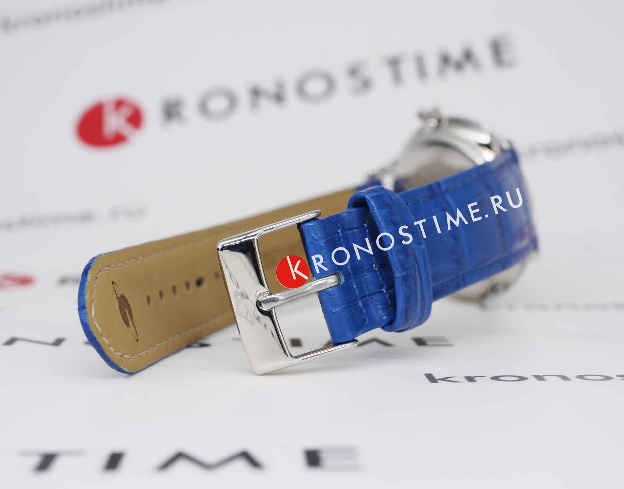 Мужские наручные часы Космос Сириус K 021.16.36 — это сочетание традиций часового искусства 60-70-х годов и футуристического дизайна, вдохновленного космическими исследованиями. Они не только служат напоминанием о прошлом, но и побуждают задуматься о будущем, позволяя наслаждаться качеством и смыслом, вложенными в каждую деталь. Полированный корпус часов выполнен в виде силуэта летающей тарелки благодаря выпуклым формам стекла и нижней части корпуса. Стальные ушки, которые напоминают опоры летающей тарелки, завершает общий образ. На задней крышке часов выгравирован фантазийный сюжет – космическая станция будущего. Синий циферблат в ретро-стиле с выгнутыми краями требует сложной технологии производства, что делает их аналогами часов прошлых эпох. Кончик секундной стрелки изогнут так, чтобы гармонировать с формой циферблата. Выпуклый градиентный циферблат украшен шлифовкой, напоминающей солнечные лучи, и ручными индексами, надежно закрепленными на двух штифтах. Специальное люминесцентное покрытиеЛюминесцентное покрытиеПозволяет считывать показания времени в темноте. Производители наносят на стрелки, часовые индексы, безель или поверхность циферблата светонакопительный состав, дающий холодное свечение. нанесено на часовую, минутную и секундную стрелки, а также на пунктирные метки и окантовку циферблата, создавая эффект светящегося изображения в темноте. Форма минерального стеклаМинеральное стеклоМинеральное стекло представляет собой искусственно выращенный минерал кварца. Такое стекло отличается особой устойчивостью к повреждениям и царапинам. Уступает по некоторым качествам сапфировому стеклу. также тщательно продумана — оно изогнуто как снаружи, так и изнутри. Эта конструкция предотвращает искажение изображения на циферблате, в отличие от традиционных стекол с прямой внутренней частью, которые могут создавать оптические искажения. Часы комплектуются кожаным браслетом синего цвета с прошивкой. Корпус изготовлен из гипоаллергенной стали, что обеспечивает комфорт при ношении. Заводная головка, застежка и ремешок украшены фирменным логотипом, подчеркивающим индивидуальность данной модели.