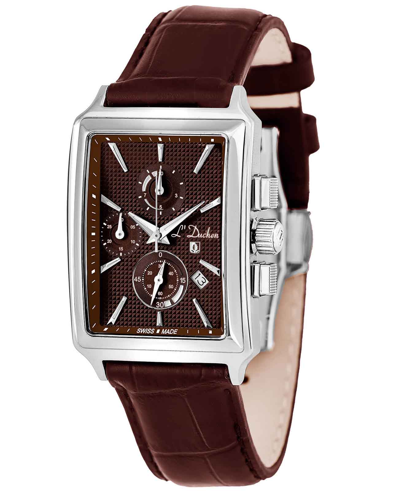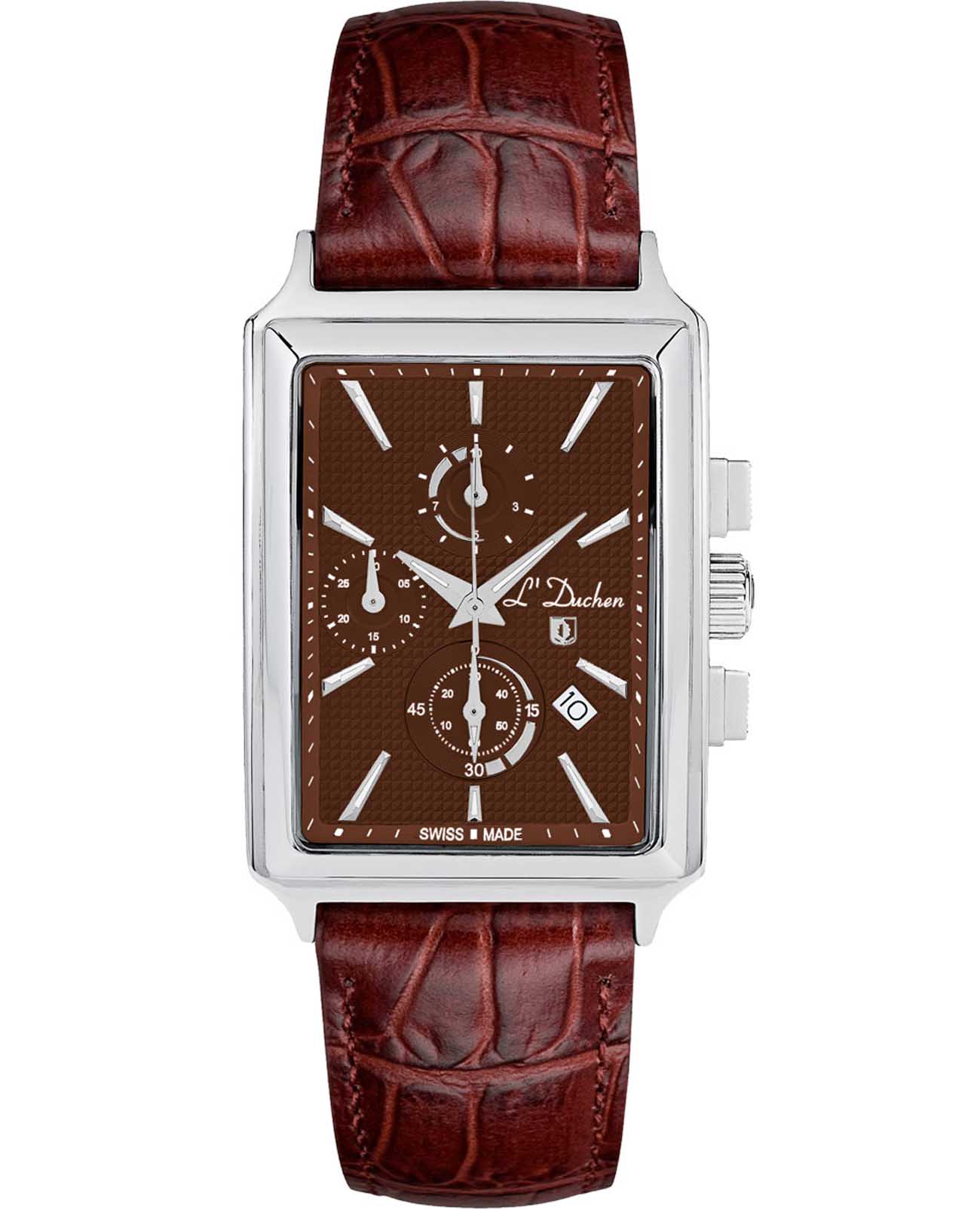 Мужские швейцарские часы- хронографХронографФункция позволяет измерять отрезки времени с особой точностью: часы, минуты, секунды. Верным признаком хронографа является наличие на циферблате 3 дополнительных окошек-счётчиков. L'Duchen Adventure Chrono D 612.12.38, кварцевый механизм с высокой точностью. Сапфировое стеклоСапфировое стеклоПрочный и надёжный материал из кристалла сапфира синтетического происхождения, характеризующийся особой твёрдостью и устойчивостью к царапинам и повреждениям. устойчивое к появлению царапин, обладающее высокой прозрачностью. Корпус часов выполнен из нержавеющей стали. Стрелки с люминесцентным покрытиемЛюминесцентное покрытиеПозволяет считывать показания времени в темноте. Производители наносят на стрелки, часовые индексы, безель или поверхность циферблата светонакопительный состав, дающий холодное свечение.. Окошко даты находится в положении между 4 и 5 часами. Класс водозащиты: 50 метров, позволит защитить корпус от случайных брызг или капель дождя. Кожаный ремешок на застёжке «бабочка» с кнопкамиЗастёжка "бабочка"Такой вид застёжки дополняется предохранителями, помогающими избежать случайного раскрытия браслета. Обладают изящным исполнением. .