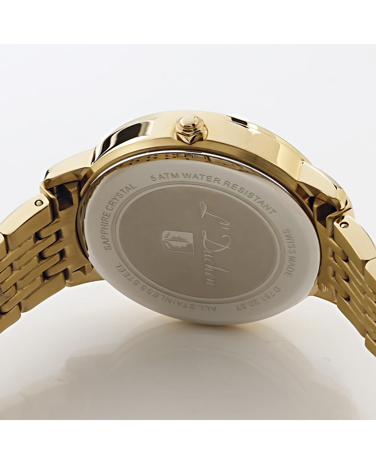 Женские швейцарские часы L'Duchen Day & Night D 781.20.37, кварцевый механизм с высокой точностью. Сапфировое стеклоСапфировое стеклоПрочный и надёжный материал из кристалла сапфира синтетического происхождения, характеризующийся особой твёрдостью и устойчивостью к царапинам и повреждениям. устойчивое к появлению царапин, обладающее высокой прозрачностью. Корпус часов выполнен из нержавеющей стали с PVD-покрытиемPVDУльтратонкое покрытие наносится в технике вакуумного напыления, сочетает в себе нитрид титана особой прочности со слоем золота или оксида хрома. Несёт в себе декоративную или защитную функцию.. Окошко даты находится в положении 6 часов. Класс водозащиты: 50 метров, позволит защитить корпус от случайных брызг или капель дождя. Стальной браслет с PVD-покрытиемPVDУльтратонкое покрытие наносится в технике вакуумного напыления, сочетает в себе нитрид титана особой прочности со слоем золота или оксида хрома. Несёт в себе декоративную или защитную функцию. на застёжке «бабочка» с кнопкамиЗастёжка "бабочка"Такой вид застёжки дополняется предохранителями, помогающими избежать случайного раскрытия браслета. Обладают изящным исполнением. .