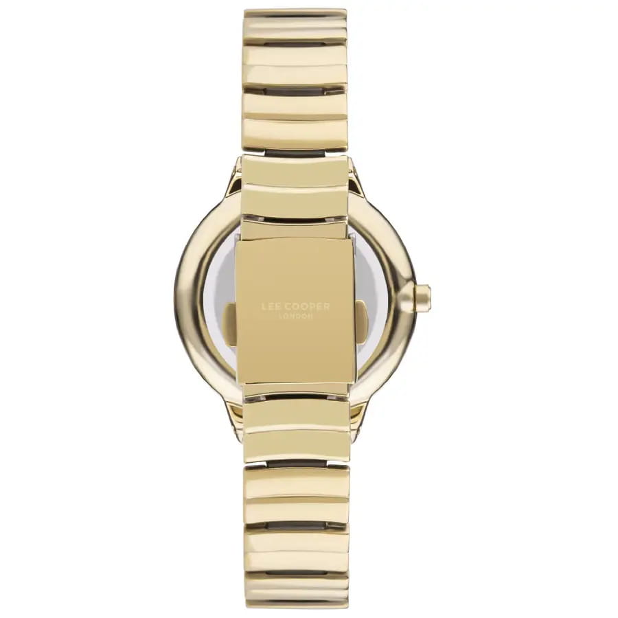 Женские наручные часы Lee Cooper LC07342.120 — это элегантная модель с утончённым дизайном. Корпус диаметром 35 мм выполнен из нержавеющей стали с IP-покрытиемIP-покрытиеМетод ионного напыления. Демонстрирует повышенную устойчивость к истиранию, окислению и химическим веществам. Под воздействием высокого давления и температуры около 1500°C молекулы металла надёжно соединяются с частицами корпуса часов., что придаёт часам изысканный вид. Перламутровый циферблат украшен изящными метками и стрелками, обеспечивая удобное считывание времени. Циферблат защищён минеральным стекломМинеральное стеклоМинеральное стекло представляет собой искусственно выращенный минерал кварца. Такое стекло отличается особой устойчивостью к повреждениям и царапинам. Уступает по некоторым качествам сапфировому стеклу., устойчивым к царапинам. Часы работают на кварцевом механизме, обеспечивая точность хода. Браслет из нержавеющей стали с раскладной застёжкойРаскладная застёжкаТакой тип застёжки используется только на браслетах из металла. Она никогда не раскрывается полностью, происходит разделение на 2 и более частей. Раскладывающая застёжка снизит вероятность потери часов к минимуму. гарантирует комфортное ношение и надёжную фиксацию на запястье. Водозащита 30 метров защищает часы от случайных брызг и дождя, делая их подходящими для повседневного использования.