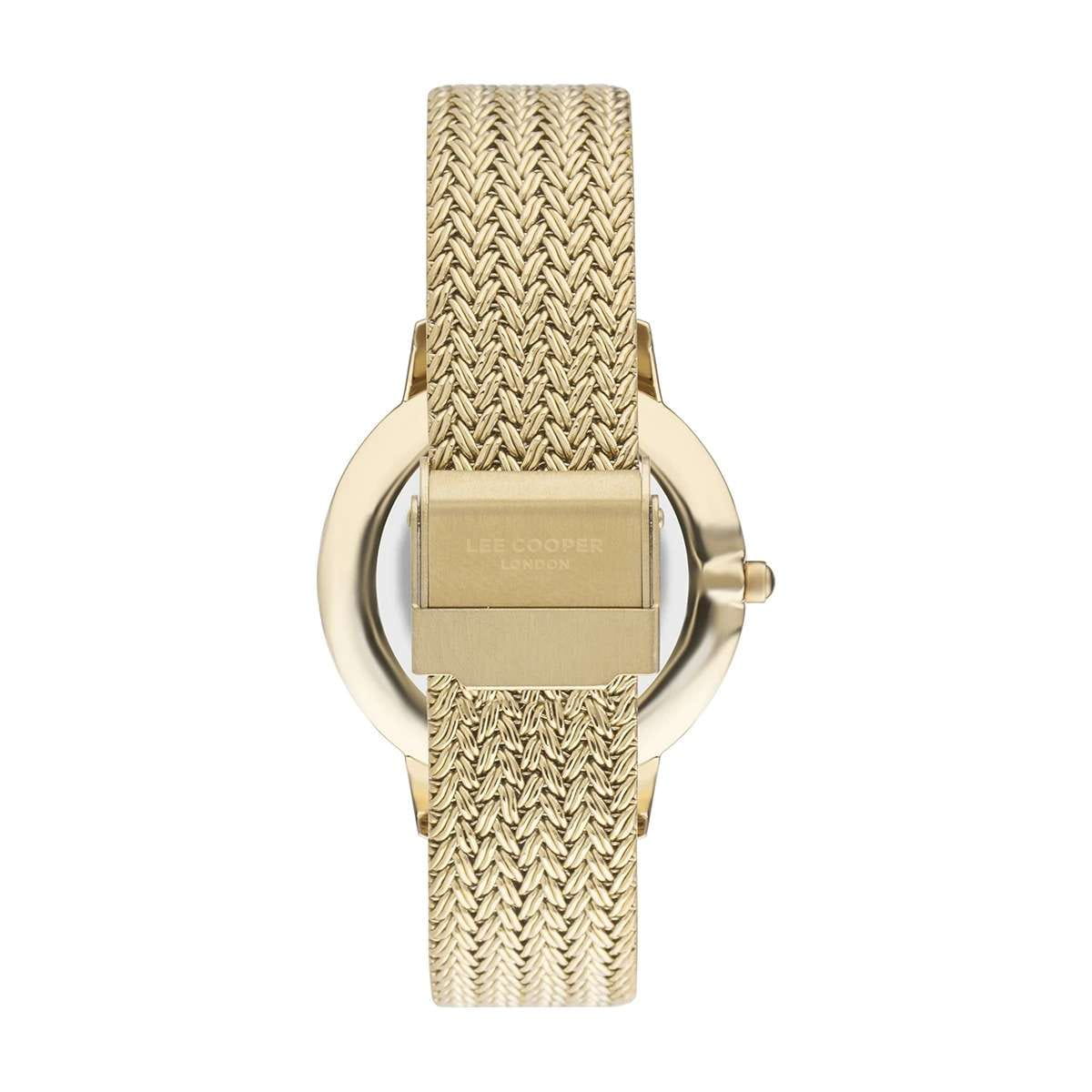 Женские наручные часы Lee Cooper LC07401.120 — это элегантная модель с утончённым дизайном. Корпус диаметром 36 мм выполнен из нержавеющей стали с IP-покрытиемIP-покрытиеМетод ионного напыления. Демонстрирует повышенную устойчивость к истиранию, окислению и химическим веществам. Под воздействием высокого давления и температуры около 1500°C молекулы металла надёжно соединяются с частицами корпуса часов., что придаёт часам изысканный вид. Перламутровый циферблат украшен изящными вставками из кристаллов и стрелками, обеспечивая удобное считывание времени. Циферблат защищён минеральным стекломМинеральное стеклоМинеральное стекло представляет собой искусственно выращенный минерал кварца. Такое стекло отличается особой устойчивостью к повреждениям и царапинам. Уступает по некоторым качествам сапфировому стеклу., устойчивым к царапинам. Часы работают на кварцевом механизме, обеспечивая точность хода. Браслет из нержавеющей стали с раскладной застёжкойРаскладная застёжкаТакой тип застёжки используется только на браслетах из металла. Она никогда не раскрывается полностью, происходит разделение на 2 и более частей. Раскладывающая застёжка снизит вероятность потери часов к минимуму. гарантирует комфортное ношение и надёжную фиксацию на запястье. Водозащита 30 метров защищает часы от случайных брызг и дождя, делая их подходящими для повседневного использования.