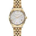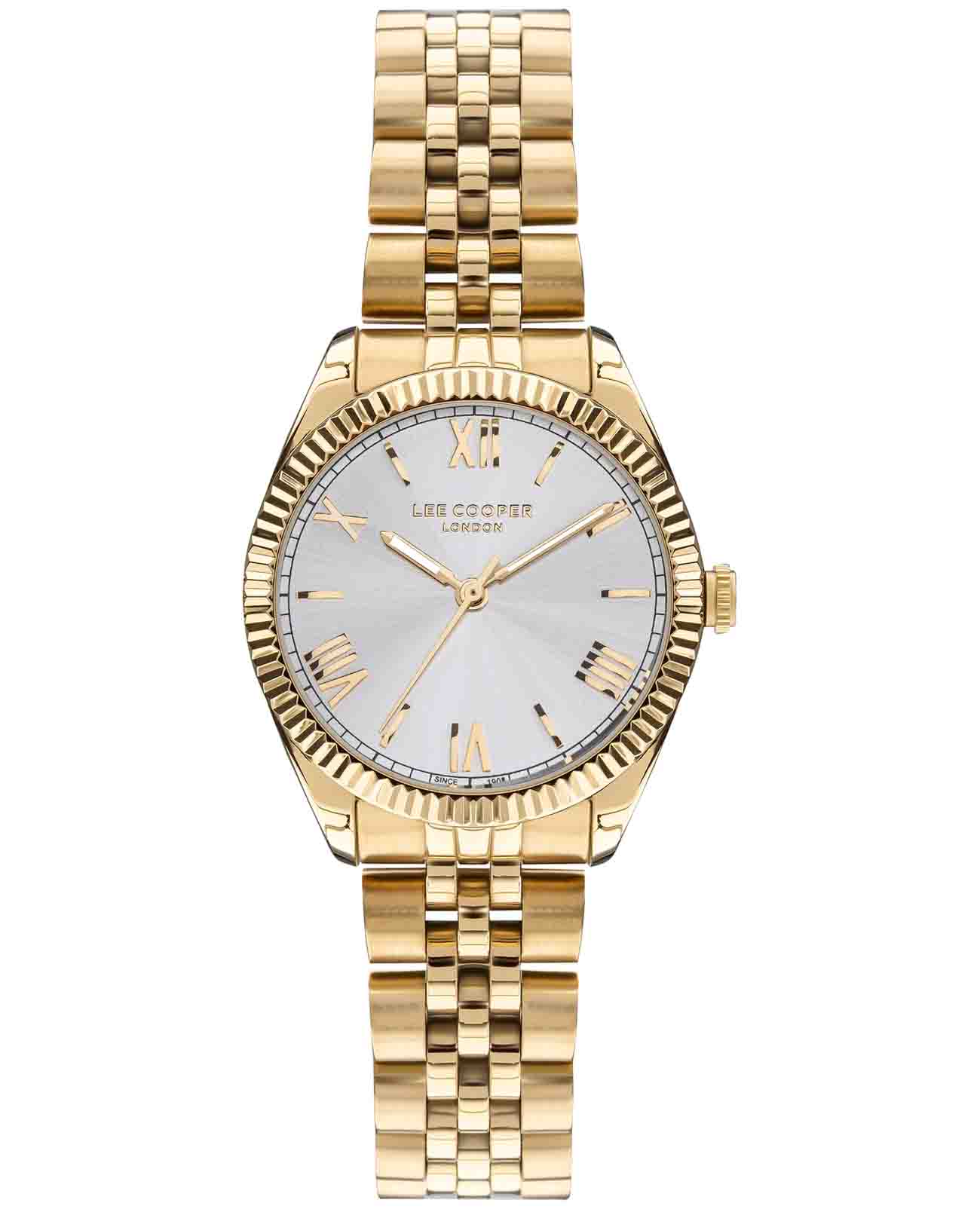 Женские наручные часы Lee Cooper LC07448.130 — это элегантная модель с утончённым дизайном. Корпус диаметром 35 мм выполнен из суперметалла с IP-покрытиемIP-покрытиеМетод ионного напыления. Демонстрирует повышенную устойчивость к истиранию, окислению и химическим веществам. Под воздействием высокого давления и температуры около 1500°C молекулы металла надёжно соединяются с частицами корпуса часов., что придаёт часам изысканный вид. Серебристый циферблат украшен изящными римскими цифрами и стрелками обеспечивая удобное считывание времени. Циферблат защищён минеральным стекломМинеральное стеклоМинеральное стекло представляет собой искусственно выращенный минерал кварца. Такое стекло отличается особой устойчивостью к повреждениям и царапинам. Уступает по некоторым качествам сапфировому стеклу., устойчивым к царапинам. Часы работают на кварцевом механизме, обеспечивая точность хода. Браслет из нержавеющей стали с раскладной застёжкойРаскладная застёжкаТакой тип застёжки используется только на браслетах из металла. Она никогда не раскрывается полностью, происходит разделение на 2 и более частей. Раскладывающая застёжка снизит вероятность потери часов к минимуму. гарантирует комфортное ношение и надёжную фиксацию на запястье. Водозащита 30 метров защищает часы от случайных брызг и дождя, делая их подходящими для повседневного использования. Стрелки покрыты люминесцентным покрытиемЛюминесцентное покрытиеПозволяет считывать показания времени в темноте. Производители наносят на стрелки, часовые индексы, безель или поверхность циферблата светонакопительный состав, дающий холодное свечение., обеспечивая удобное считывание показаний в условиях недостаточного освещения.