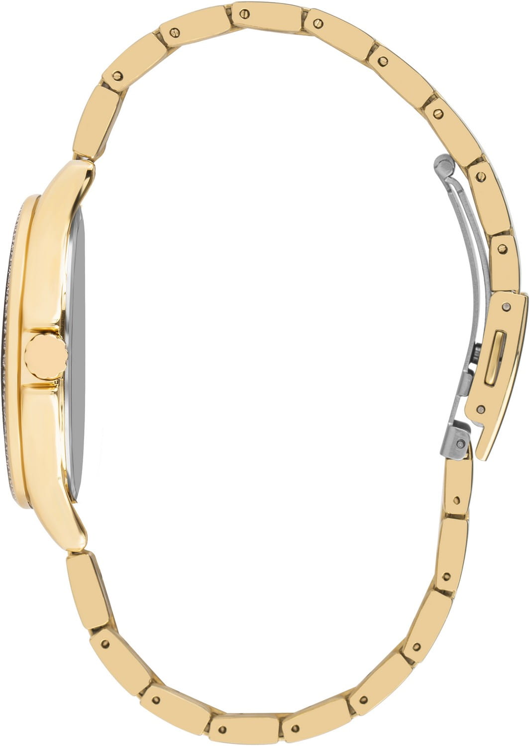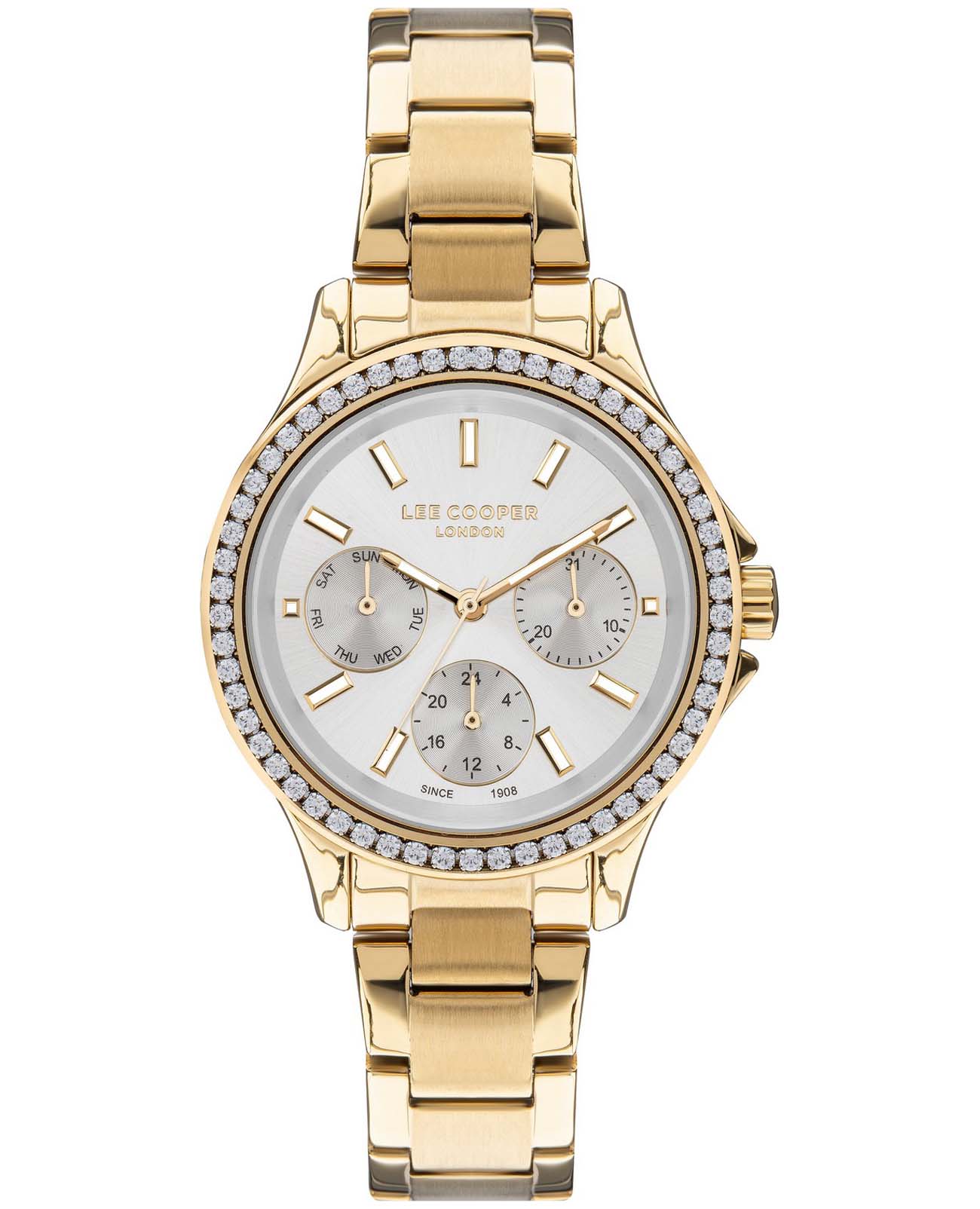 Женские часы Lee Cooper LC07512.130 — это стильное сочетание элегантности и современного дизайна. Круглый корпус диаметром 36 мм выполнен из суперметалла с IP-покрытиемIP-покрытиеМетод ионного напыления. Демонстрирует повышенную устойчивость к истиранию, окислению и химическим веществам. Под воздействием высокого давления и температуры около 1500°C молекулы металла надёжно соединяются с частицами корпуса часов. золотого цвета, а неподвижный безельБезельВнешний ободок, закрепляющий стекло. В спортивных часах так называется поворотное кольцо с делениями на циферблате, выполняет роль таймера – замеряет отрезки времени на шкале. Неподвижный безель – элемент декора. Однонаправленно вращающийся безель на дайверских часах позволяет фиксировать моменты погружения и выныривания на поверхность. украшен цирконами, придающими модели особый блеск. Серебристый циферблат защищен минеральным стекломМинеральное стеклоМинеральное стекло представляет собой искусственно выращенный минерал кварца. Такое стекло отличается особой устойчивостью к повреждениям и царапинам. Уступает по некоторым качествам сапфировому стеклу., обеспечивающим устойчивость к царапинам. Метки в виде штрихов. Часы оснащены надежным кварцевым механизмом, а металлический браслет с IP-покрытиемIP-покрытиеМетод ионного напыления. Демонстрирует повышенную устойчивость к истиранию, окислению и химическим веществам. Под воздействием высокого давления и температуры около 1500°C молекулы металла надёжно соединяются с частицами корпуса часов. на раскладной застёжкеРаскладная застёжкаТакой тип застёжки используется только на браслетах из металла. Она никогда не раскрывается полностью, происходит разделение на 2 и более частей. Раскладывающая застёжка снизит вероятность потери часов к минимуму. гарантирует комфортную посадку на запястье. Мультифункциональная модель с индикацией даты, дня недели, с дополнительным 24-х часовым индикатором. Стрелки и метки с люминесцентным покрытиемЛюминесцентное покрытиеПозволяет считывать показания времени в темноте. Производители наносят на стрелки, часовые индексы, безель или поверхность циферблата светонакопительный состав, дающий холодное свечение. позволяют легко считывать время даже в условиях недостаточного освещения. Водозащита 30 метров защищает модель от случайных брызг и дождя. Lee Cooper — отличный выбор для тех, кто ценит утонченность и качество.