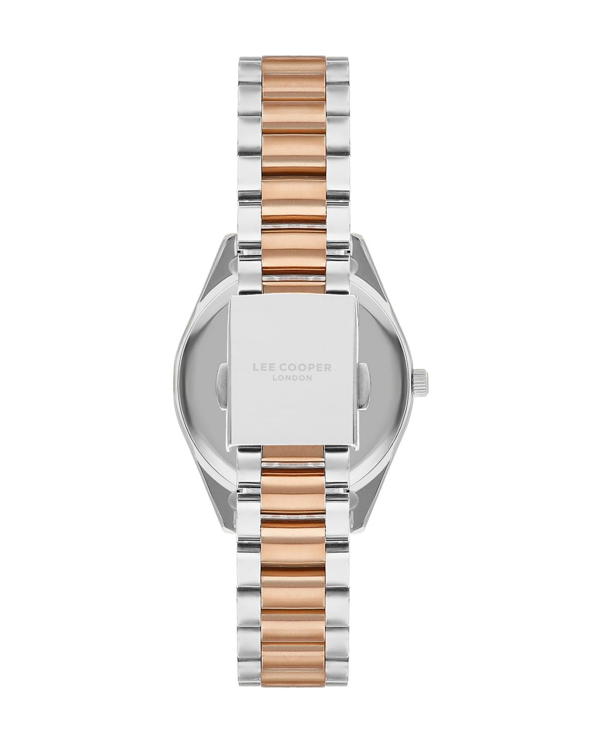 Женские часы Lee Cooper LC07827.560 выполнены в классическом стиле и сочетают строгий дизайн с надёжным механизмом. Модель оснащена кварцевым механизмом, обеспечивающим точность хода и минимальное обслуживание. Корпус круглой формы имеет размер 34 мм, изготовлен из суперметалла с изысканным неподвижным безелемБезельВнешний ободок, закрепляющий стекло. В спортивных часах так называется поворотное кольцо с делениями на циферблате, выполняет роль таймера – замеряет отрезки времени на шкале. Неподвижный безель – элемент декора. Однонаправленно вращающийся безель на дайверских часах позволяет фиксировать моменты погружения и выныривания на поверхность. с IP-покрытиемIP-покрытиеМетод ионного напыления. Демонстрирует повышенную устойчивость к истиранию, окислению и химическим веществам. Под воздействием высокого давления и температуры около 1500°C молекулы металла надёжно соединяются с частицами корпуса часов., гарантирует комфорт при ношении. Защиту циферблата обеспечивает минеральное стеклоМинеральное стеклоМинеральное стекло представляет собой искусственно выращенный минерал кварца. Такое стекло отличается особой устойчивостью к повреждениям и царапинам. Уступает по некоторым качествам сапфировому стеклу., устойчивое к мелким механическим повреждениям. Лаконичные стрелки и метки с люминесцентным покрытиемЛюминесцентное покрытиеПозволяет считывать показания времени в темноте. Производители наносят на стрелки, часовые индексы, безель или поверхность циферблата светонакопительный состав, дающий холодное свечение.. Изысканный стальной браслет с частичным IP-покрытиемIP-покрытиеМетод ионного напыления. Демонстрирует повышенную устойчивость к истиранию, окислению и химическим веществам. Под воздействием высокого давления и температуры около 1500°C молекулы металла надёжно соединяются с частицами корпуса часов. на раскладной застёжкеРаскладная застёжкаТакой тип застёжки используется только на браслетах из металла. Она никогда не раскрывается полностью, происходит разделение на 2 и более частей. Раскладывающая застёжка снизит вероятность потери часов к минимуму. гарантирует удобную посадку и надёжную фиксацию на запястье. Окошко даты расположено в положении 3 часов. Водозащита 30WR позволяет использовать часы в повседневных условиях без риска повреждения от случайных брызг воды. Это сочетание классического дизайна, прочности материалов и качества исполнения для уверенных в себе женщин.