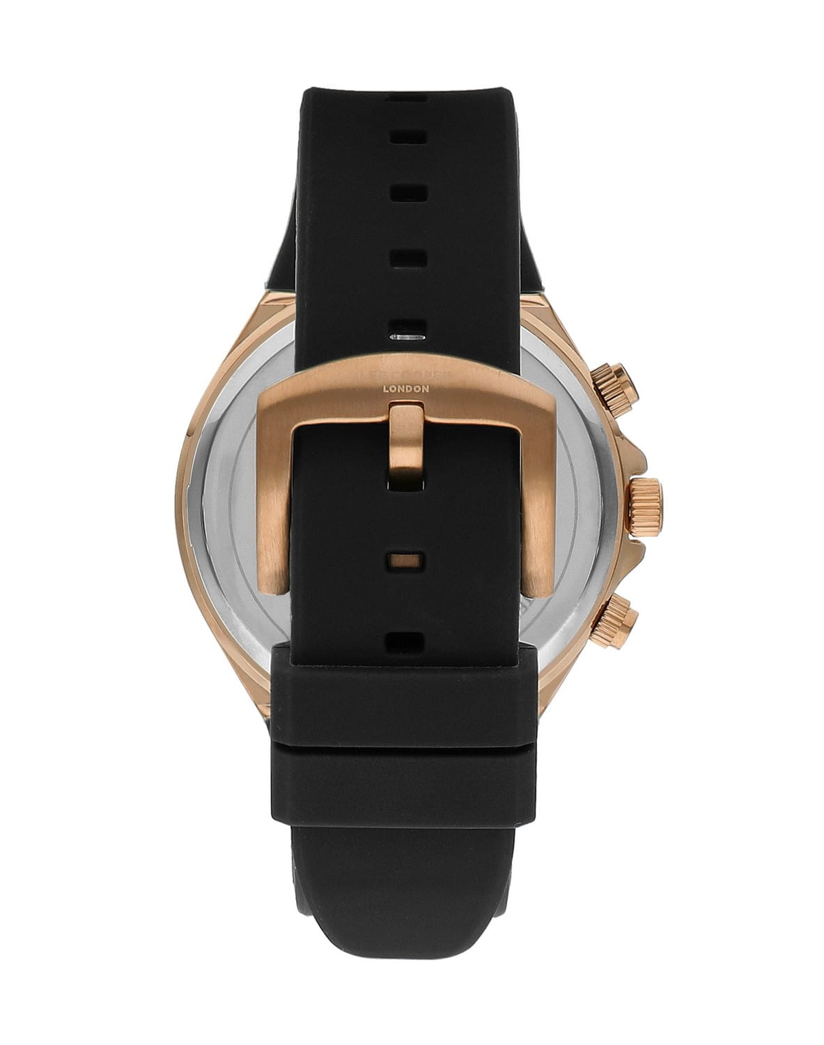 Мужские часы Lee Cooper LC07854.451 выполнены в классическом стиле и сочетают строгий дизайн с надёжным механизмом. Модель оснащена кварцевым механизмом, обеспечивающим точность хода и минимальное обслуживание. Корпус имеет размер 46 мм, изготовлен из суперметалла с IP-покрытиемIP-покрытиеМетод ионного напыления. Демонстрирует повышенную устойчивость к истиранию, окислению и химическим веществам. Под воздействием высокого давления и температуры около 1500°C молекулы металла надёжно соединяются с частицами корпуса часов.. Циферблат черного цвета дополнен индексами для чёткого отсчёта времени, а также функциями отображения даты, 24-часового индикатора времени и хронографаХронографФункция позволяет измерять отрезки времени с особой точностью: часы, минуты, секунды. Верным признаком хронографа является наличие на циферблате 3 дополнительных окошек-счётчиков.. Защиту циферблата обеспечивает минеральное стеклоМинеральное стеклоМинеральное стекло представляет собой искусственно выращенный минерал кварца. Такое стекло отличается особой устойчивостью к повреждениям и царапинам. Уступает по некоторым качествам сапфировому стеклу., устойчивое к мелким механическим повреждениям. Ремень из каучука оснащен стандартной застежкой, обеспечивающим комфортное и безопасное ношение. Водозащита 5 АТМ позволяет использовать часы в повседневных условиях без риска повреждения от случайных брызг воды. Это сочетание классического дизайна, прочности материалов и качества исполнения для уверенных в себе мужчин.