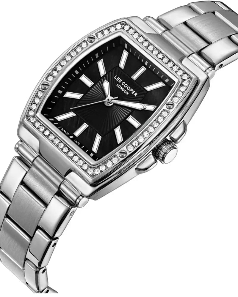 Женские наручные часы Lee Cooper LC08058.350 — это элегантная модель с утончённым дизайном. Корпус диаметром 30 мм выполнен из нержавеющей стали, что придаёт часам изысканный вид. Черный циферблат украшен изящными кристаллами, а также метками и стрелками с люминесцентным покрытиемЛюминесцентное покрытиеПозволяет считывать показания времени в темноте. Производители наносят на стрелки, часовые индексы, безель или поверхность циферблата светонакопительный состав, дающий холодное свечение., обеспечивая удобное считывание времени. Циферблат защищён минеральным стекломМинеральное стеклоМинеральное стекло представляет собой искусственно выращенный минерал кварца. Такое стекло отличается особой устойчивостью к повреждениям и царапинам. Уступает по некоторым качествам сапфировому стеклу., устойчивым к царапинам. Минеральное стеклоМинеральное стеклоМинеральное стекло представляет собой искусственно выращенный минерал кварца. Такое стекло отличается особой устойчивостью к повреждениям и царапинам. Уступает по некоторым качествам сапфировому стеклу. более устойчиво к появлению небольших царапин и потертостей, хорошо может выдержать небольшие удары и падения. Часы работают на кварцевом механизме, обеспечивая точность хода. Браслет из нержавеющей стали с раскладной застёжкойРаскладная застёжкаТакой тип застёжки используется только на браслетах из металла. Она никогда не раскрывается полностью, происходит разделение на 2 и более частей. Раскладывающая застёжка снизит вероятность потери часов к минимуму. гарантирует комфортное ношение и надёжную фиксацию на запястье. Водозащита WR30 защищает часы от случайных брызг и дождя, делая их подходящими для повседневного использования.