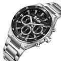 Мужские наручные часы Lee Cooper LC08175.350 оснащены кварцевым механизмом, обеспечивающий высокую точность хода и надежность. Элегантный корпус часов выполнен из суперметалла серебристого цвета, что делает их устойчивыми к внешним воздействиям и придает благородный вид. Циферблат украшен классическими стрелками с люминесцентным покрытиемЛюминесцентное покрытиеПозволяет считывать показания времени в темноте. Производители наносят на стрелки, часовые индексы, безель или поверхность циферблата светонакопительный состав, дающий холодное свечение., гармонично дополняющим общий дизайн модели. Для защиты циферблата используется минеральное стеклоМинеральное стеклоМинеральное стекло представляет собой искусственно выращенный минерал кварца. Такое стекло отличается особой устойчивостью к повреждениям и царапинам. Уступает по некоторым качествам сапфировому стеклу., устойчивое к царапинам и механическим повреждениям. Неподвижный безельБезельВнешний ободок, закрепляющий стекло. В спортивных часах так называется поворотное кольцо с делениями на циферблате, выполняет роль таймера – замеряет отрезки времени на шкале. Неподвижный безель – элемент декора. Однонаправленно вращающийся безель на дайверских часах позволяет фиксировать моменты погружения и выныривания на поверхность. с IP-покрытиемIP-покрытиеМетод ионного напыления. Демонстрирует повышенную устойчивость к истиранию, окислению и химическим веществам. Под воздействием высокого давления и температуры около 1500°C молекулы металла надёжно соединяются с частицами корпуса часов. черного цвета. Корпус имеет круглую форму диаметром 43 мм, что делает часы заметными и подходящими. Браслет из стали оснащен раскладной застёжкойРаскладная застёжкаТакой тип застёжки используется только на браслетах из металла. Она никогда не раскрывается полностью, происходит разделение на 2 и более частей. Раскладывающая застёжка снизит вероятность потери часов к минимуму., обеспечивающим комфортное и безопасное ношение. Вынесенный циферблат с 24-х часовым указателем времени, индикацией даты и дня недели. Часы обладают водонепроницаемостью до 50 метров (5 АТМ), что позволяет использовать их в повседневной жизни, включая контакт с водой при мытье рук или дожде. Эти часы станут идеальным выбором для мужчин, ценящих стиль, качество и функциональность.
