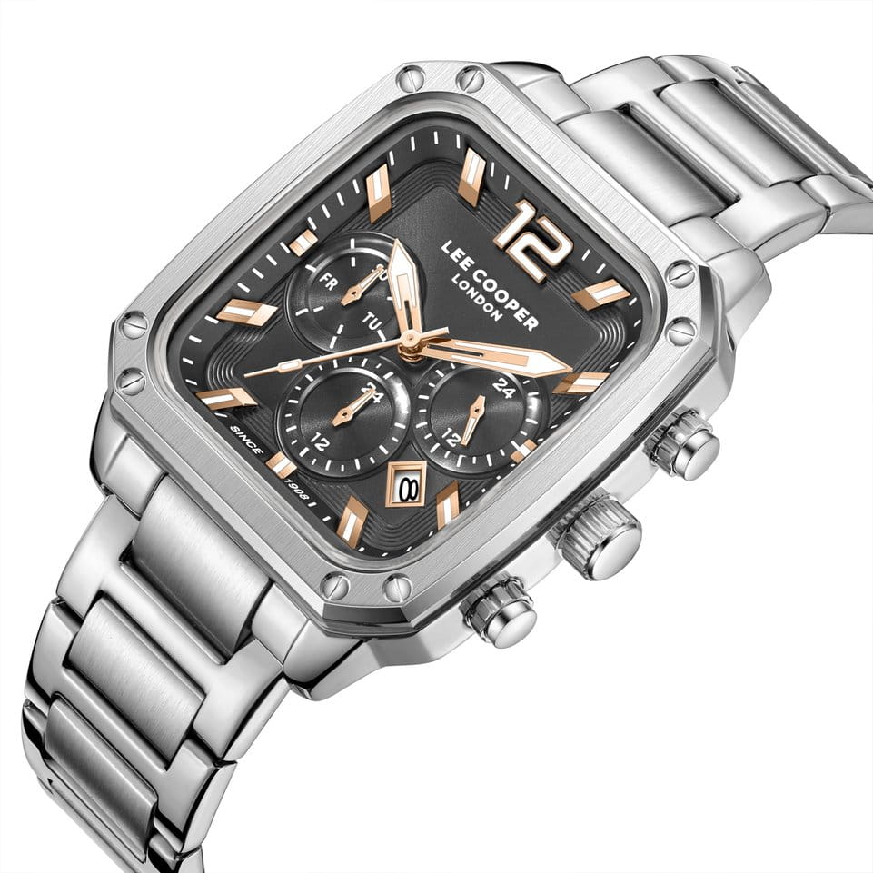 Мужские наручные часы Lee Cooper LC08182.360 оснащены кварцевым механизмом, обеспечивающий высокую точность хода и надежность. Элегантный корпус часов выполнен из суперметалла серебристого цвета, что делает их устойчивыми к внешним воздействиям и придает благородный вид. Циферблат украшен классическими стрелками и метками с люминесцентным покрытиемЛюминесцентное покрытиеПозволяет считывать показания времени в темноте. Производители наносят на стрелки, часовые индексы, безель или поверхность циферблата светонакопительный состав, дающий холодное свечение., гармонично дополняющим общий дизайн модели. Для защиты циферблата используется минеральное стеклоМинеральное стеклоМинеральное стекло представляет собой искусственно выращенный минерал кварца. Такое стекло отличается особой устойчивостью к повреждениям и царапинам. Уступает по некоторым качествам сапфировому стеклу., устойчивое к царапинам и механическим повреждениям. Корпус размером 39 мм x 49 мм, что делает часы заметными и подходящими. Стальной браслет на раскладной застёжкеРаскладная застёжкаТакой тип застёжки используется только на браслетах из металла. Она никогда не раскрывается полностью, происходит разделение на 2 и более частей. Раскладывающая застёжка снизит вероятность потери часов к минимуму. обеспечивает комфортное и безопасное ношение. Окошко даты находится в положении между 4 и 5 часов. Часы обладают водонепроницаемостью до 30 метров (3 АТМ), что позволяет использовать их в повседневной жизни, включая контакт с водой при мытье рук или дожде. Эти часы станут идеальным выбором для мужчин, ценящих стиль, качество и функциональность.