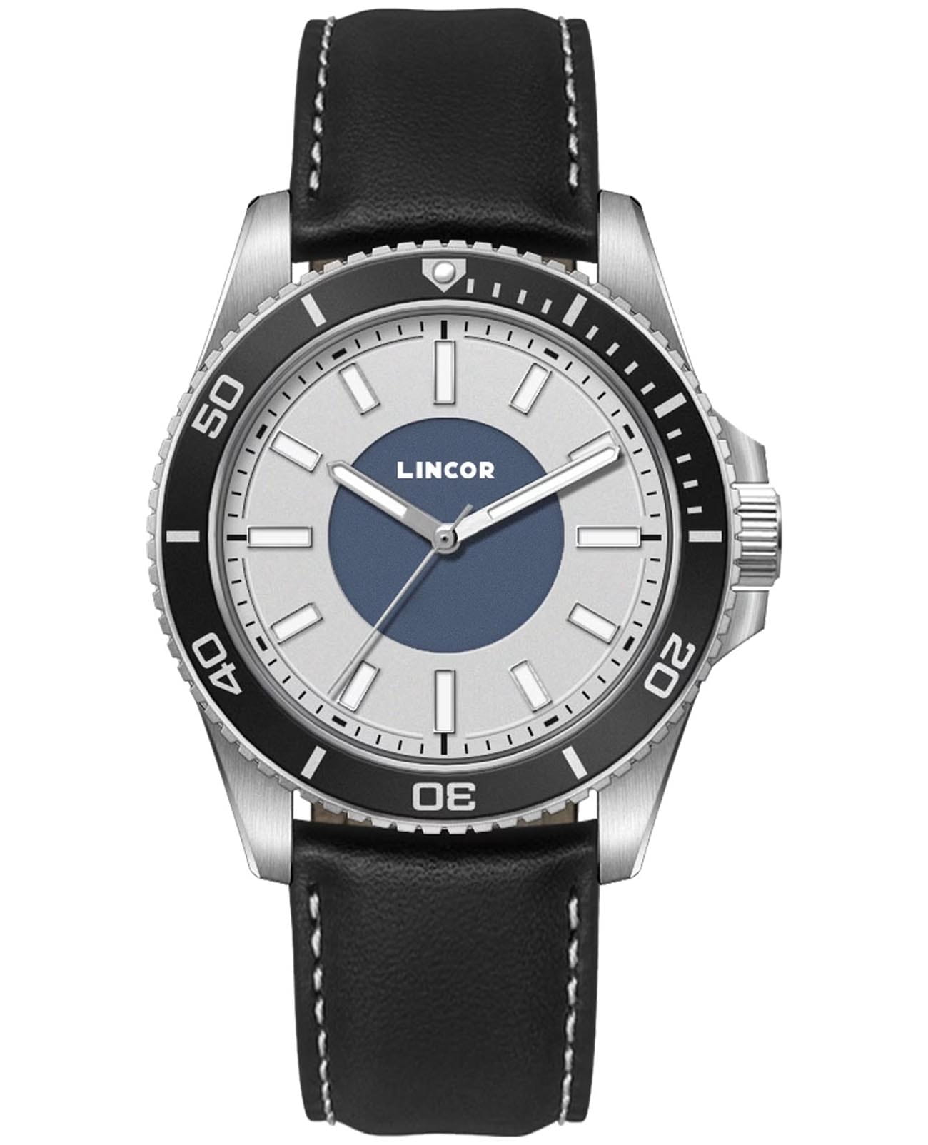 Lincor 7608SBK10 — мужские кварцевые часы с системой Eco-Drive, работающей без замены батарейки. Корпус диаметром 42 мм из серебристой нержавеющей стали с ремешком из кожи на стандартной застёжке. Циферблат оснащён стрелками и метками с люминесцентным покрытиемЛюминесцентное покрытиеПозволяет считывать показания времени в темноте. Производители наносят на стрелки, часовые индексы, безель или поверхность циферблата светонакопительный состав, дающий холодное свечение., Сапфировое стеклоСапфировое стеклоПрочный и надёжный материал из кристалла сапфира синтетического происхождения, характеризующийся особой твёрдостью и устойчивостью к царапинам и повреждениям. защищает поверхность от царапин. БезельБезельВнешний ободок, закрепляющий стекло. В спортивных часах так называется поворотное кольцо с делениями на циферблате, выполняет роль таймера – замеряет отрезки времени на шкале. Неподвижный безель – элемент декора. Однонаправленно вращающийся безель на дайверских часах позволяет фиксировать моменты погружения и выныривания на поверхность. черного цвета с PVD-покрытиемPVDУльтратонкое покрытие наносится в технике вакуумного напыления, сочетает в себе нитрид титана особой прочности со слоем золота или оксида хрома. Несёт в себе декоративную или защитную функцию.. Водозащита 100 м рассчитана на плавание, ныряние и другие водные активности.