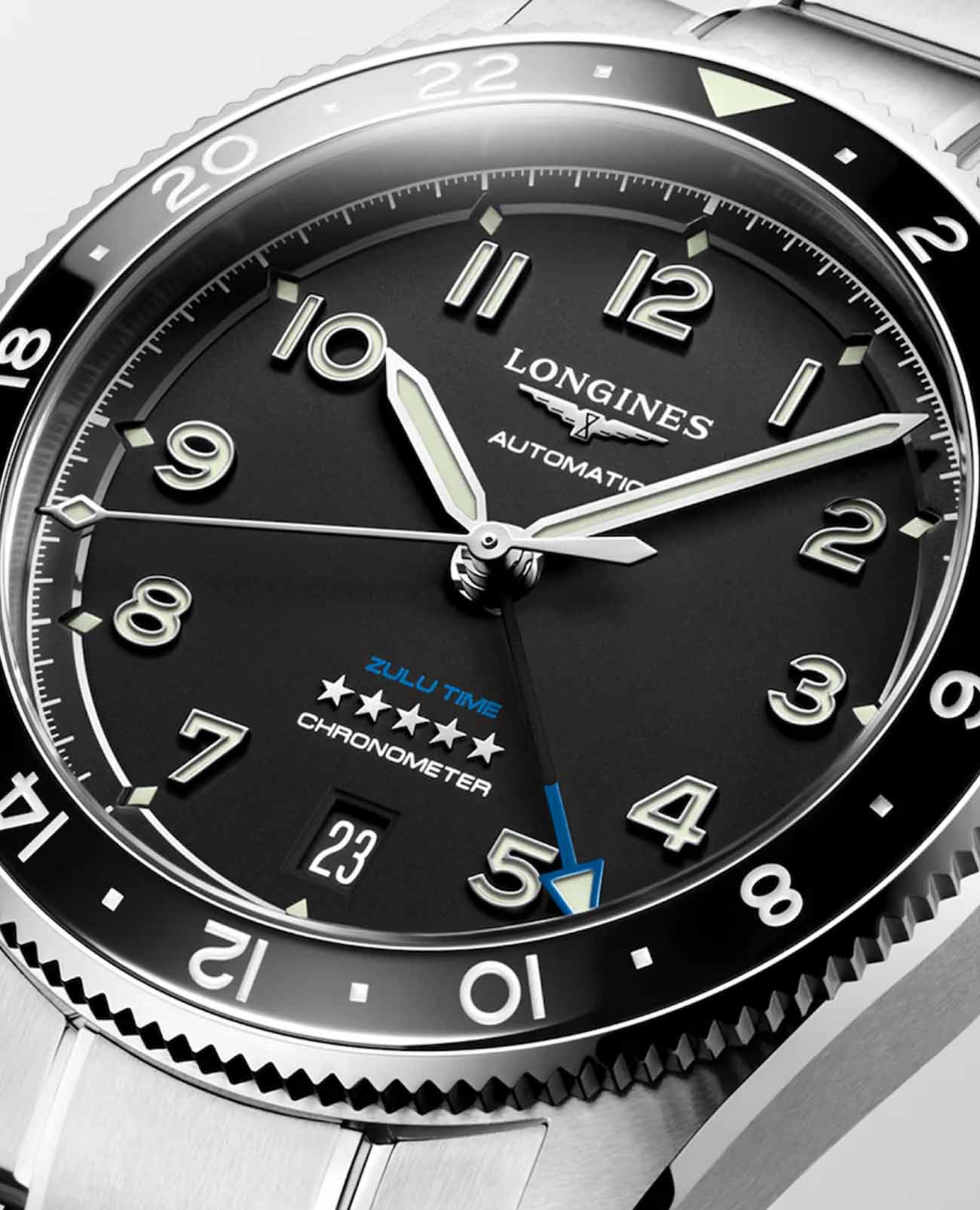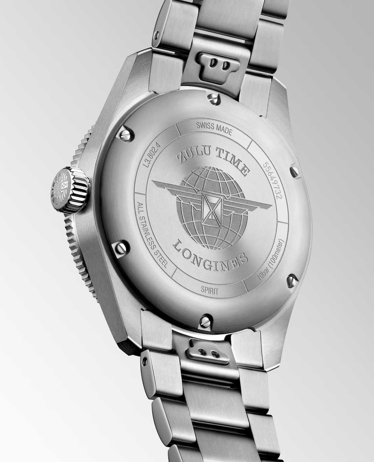 Мужские швейцарские механические часы Longines Spirit L3.802.4.53.6. Сапфировое стеклоСапфировое стеклоПрочный и надёжный материал из кристалла сапфира синтетического происхождения, характеризующийся особой твёрдостью и устойчивостью к царапинам и повреждениям. с многослойным антибликовым покрытием с обеих сторон, устойчивое к появлению царапин, обладающее высокой прозрачностью. Корпус часов изготовлен из стали. Вращающийся безельБезельВнешний ободок, закрепляющий стекло. В спортивных часах так называется поворотное кольцо с делениями на циферблате, выполняет роль таймера – замеряет отрезки времени на шкале. Неподвижный безель – элемент декора. Однонаправленно вращающийся безель на дайверских часах позволяет фиксировать моменты погружения и выныривания на поверхность. из стали и керамики, защищенный от царапин, никогда не изнашивается и не выцветает. Стрелки и метки с люминесцентным покрытиемЛюминесцентное покрытиеПозволяет считывать показания времени в темноте. Производители наносят на стрелки, часовые индексы, безель или поверхность циферблата светонакопительный состав, дающий холодное свечение.. Класс водозащиты: 100 метров, позволит плавать, нырять и заниматься другими водными видами спорт. Стальной браслет на раскладной застёжкеРаскладная застёжкаТакой тип застёжки используется только на браслетах из металла. Она никогда не раскрывается полностью, происходит разделение на 2 и более частей. Раскладывающая застёжка снизит вероятность потери часов к минимуму..