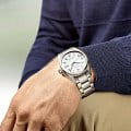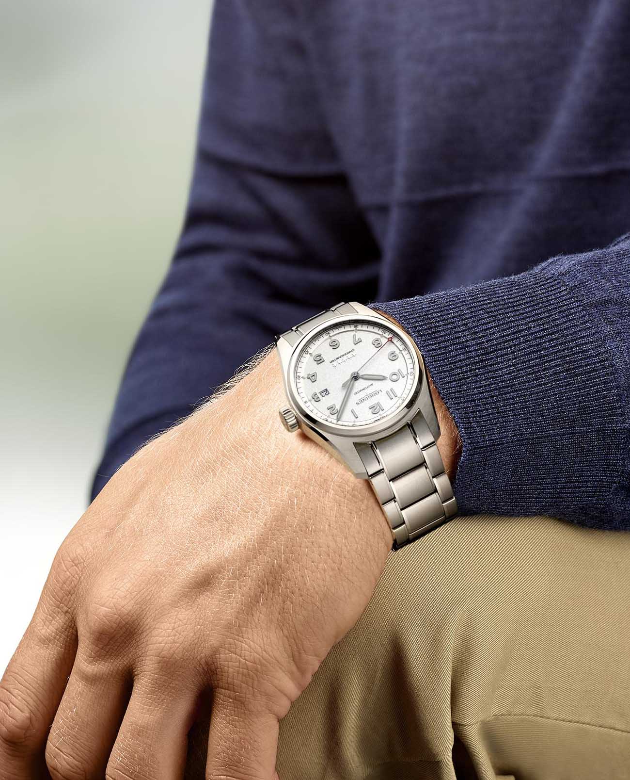 Сапфировое стеклоСапфировое стеклоПрочный и надёжный материал из кристалла сапфира синтетического происхождения, характеризующийся особой твёрдостью и устойчивостью к царапинам и повреждениям. с двухсторонним антибликовым покрытиемАнтибликовое покрытиеСлой оксида металла в 0,13-0,3 микрон, благодаря которому стекло часов не бликует и не отражает свет. Антибликовое покрытие уменьшает отражение света в 10 раз, обеспечивая отличную читаемость показателей циферблата., что обеспечивает отличную видимость циферблата в любых условиях. Стрелки и метки с люминесцентнымЛюминесцентное покрытиеПозволяет считывать показания времени в темноте. Производители наносят на стрелки, часовые индексы, безель или поверхность циферблата светонакопительный состав, дающий холодное свечение. покрытием облегчают чтение времени в темноте. Часы обладают классом водозащиты 100 метров, что позволяет использовать их для плавания и занятий водными видами спорта. Стальной браслет с застёжкой «бабочка» с кнопкамиЗастёжка "бабочка"Такой вид застёжки дополняется предохранителями, помогающими избежать случайного раскрытия браслета. Обладают изящным исполнением. придает часам дополнительную надежность и комфорт при ношении.