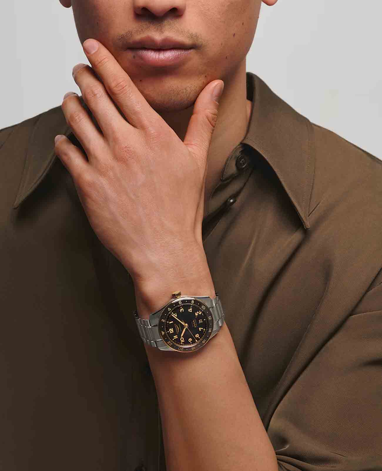 Мужские швейцарские механические часы с автоподзаводом Longines Spirit L3.812.5.53.6. Корпус часов изготовлен из нержавеющей стали. БезельБезельВнешний ободок, закрепляющий стекло. В спортивных часах так называется поворотное кольцо с делениями на циферблате, выполняет роль таймера – замеряет отрезки времени на шкале. Неподвижный безель – элемент декора. Однонаправленно вращающийся безель на дайверских часах позволяет фиксировать моменты погружения и выныривания на поверхность. из 18-каратного золота18-каратное золотоОбозначение по каратной системе пробирования, оно показывает, сколько драгоценного металла содержится в изделии. 18 карат - в составе 75% чистого золота, соответствует 750 пробе.