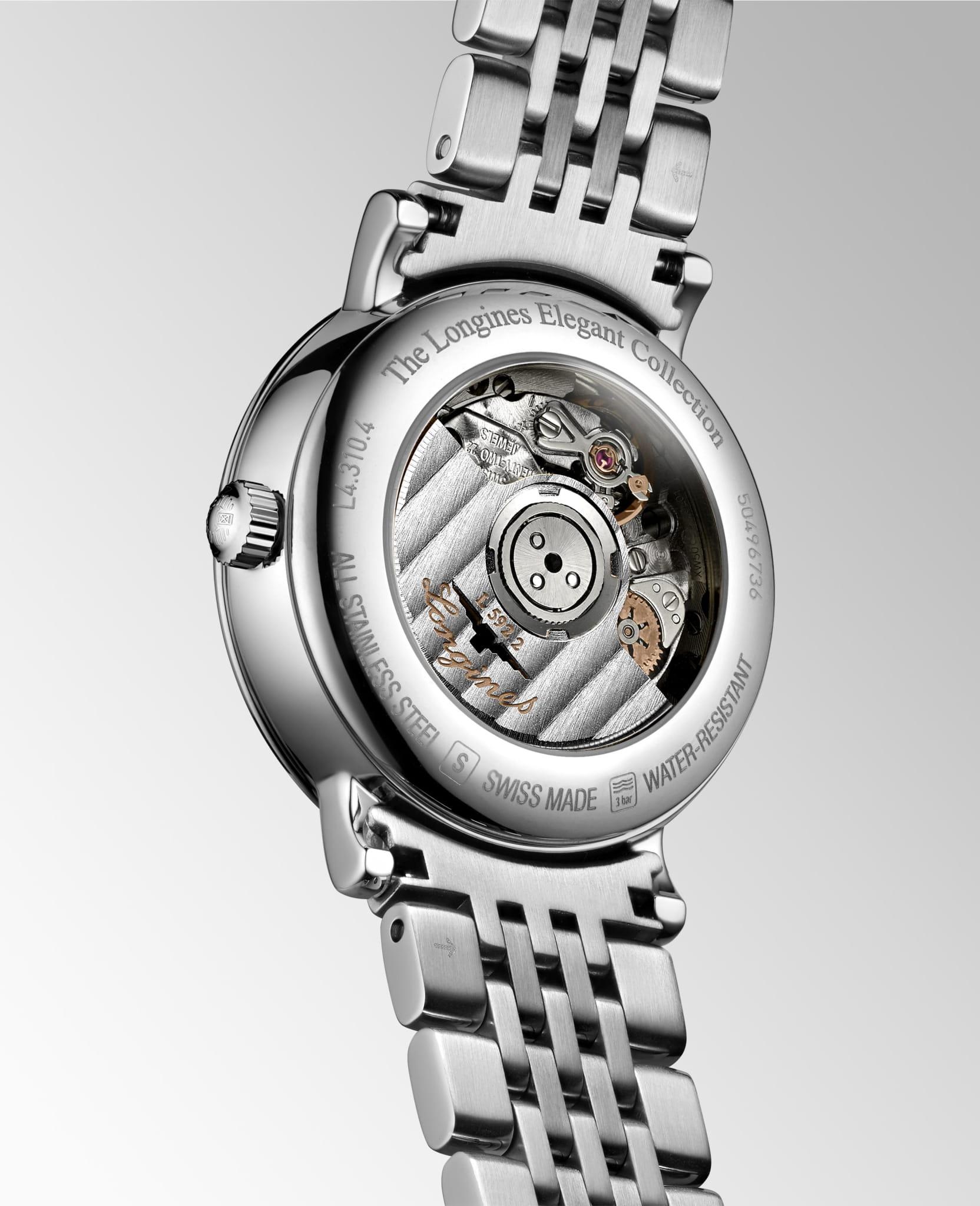 Швейцарские механические часы с автоподзаводом Longines Elegant Collection L4.310.4.12.6. Сапфировое стеклоСапфировое стеклоПрочный и надёжный материал из кристалла сапфира синтетического происхождения, характеризующийся особой твёрдостью и устойчивостью к царапинам и повреждениям. с многослойным антибликовым покрытием с обеих сторон, устойчивое к появлению царапин, обладающее высокой прозрачностью. Корпус часов изготовлен из стали. Окошко даты находится в положении 3 часа. Класс водозащиты: 30 метров, позволит защитить корпус от случайных брызг или капель дождя. Браслет из стали на застёжке-бабочке с кнопкамиЗастёжка "бабочка"Такой вид застёжки дополняется предохранителями, помогающими избежать случайного раскрытия браслета. Обладают изящным исполнением. .