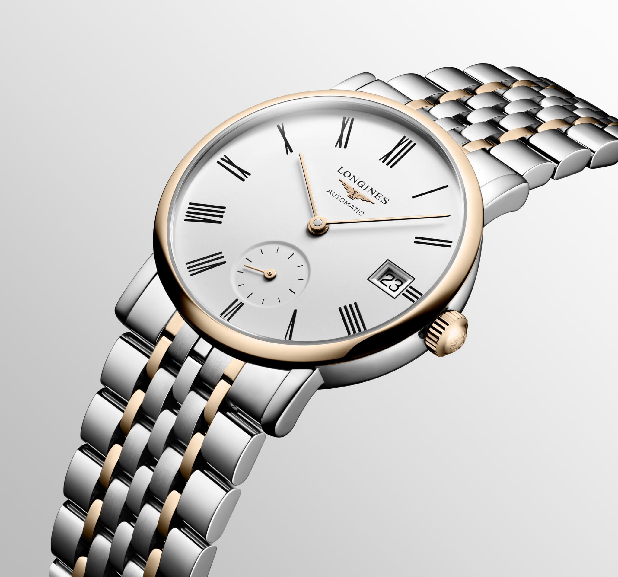 Женские швейцарские механические часы с автоподзаводом Longines Elegant Collection L4.312.5.11.7. Сапфировое стеклоСапфировое стеклоПрочный и надёжный материал из кристалла сапфира синтетического происхождения, характеризующийся особой твёрдостью и устойчивостью к царапинам и повреждениям. устойчивое к появлению царапин, обладающее высокой прозрачностью. Корпус часов изготовлен из нержавеющей стали. БезельБезельВнешний ободок, закрепляющий стекло. В спортивных часах так называется поворотное кольцо с делениями на циферблате, выполняет роль таймера – замеряет отрезки времени на шкале. Неподвижный безель – элемент декора. Однонаправленно вращающийся безель на дайверских часах позволяет фиксировать моменты погружения и выныривания на поверхность. с 18-каратным золотом18-каратное золотоОбозначение по каратной системе пробирования, оно показывает, сколько драгоценного металла содержится в изделии. 18 карат - в составе 75% чистого золота, соответствует 750 пробе.