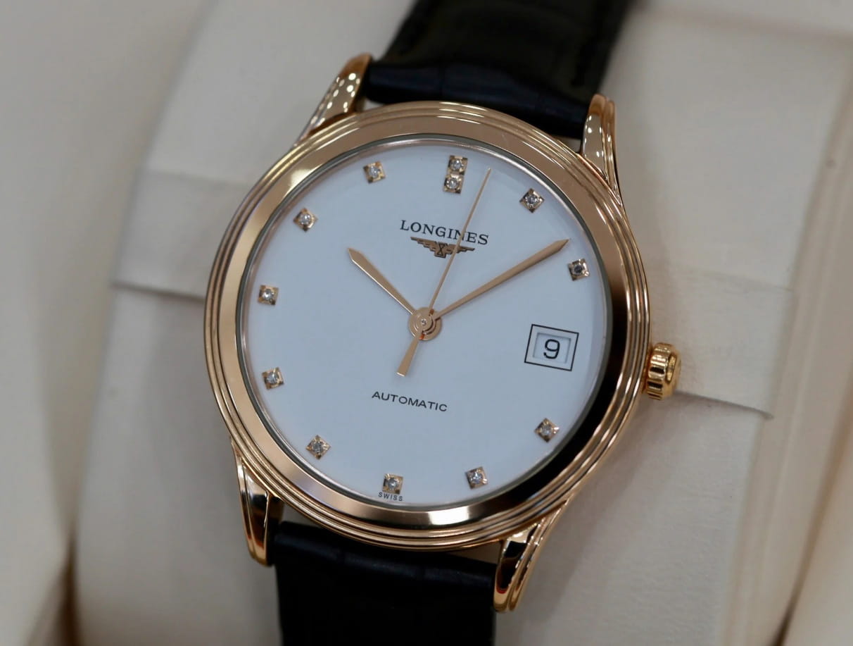 Мужские швейцарские механические часы Longines Flagship L4.774.8.27.2, механический механизм (автоматический калибр) с высокой точностью. Сапфировое стеклоСапфировое стеклоПрочный и надёжный материал из кристалла сапфира синтетического происхождения, характеризующийся особой твёрдостью и устойчивостью к царапинам и повреждениям. устойчивое к появлению царапин, обладающее высокой прозрачностью. Класс водозащиты: 30 метров, позволит защитить корпус от случайных брызг или капель дождя. Корпус часов изготовлен из 18-каратного розового золота18-каратное золотоОбозначение по каратной системе пробирования, оно показывает, сколько драгоценного металла содержится в изделии. 18 карат - в составе 75% чистого золота, соответствует 750 пробе.