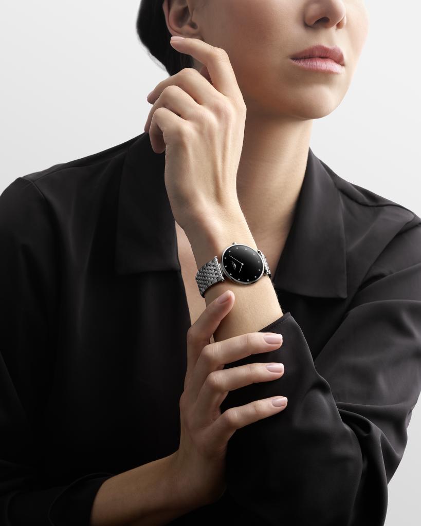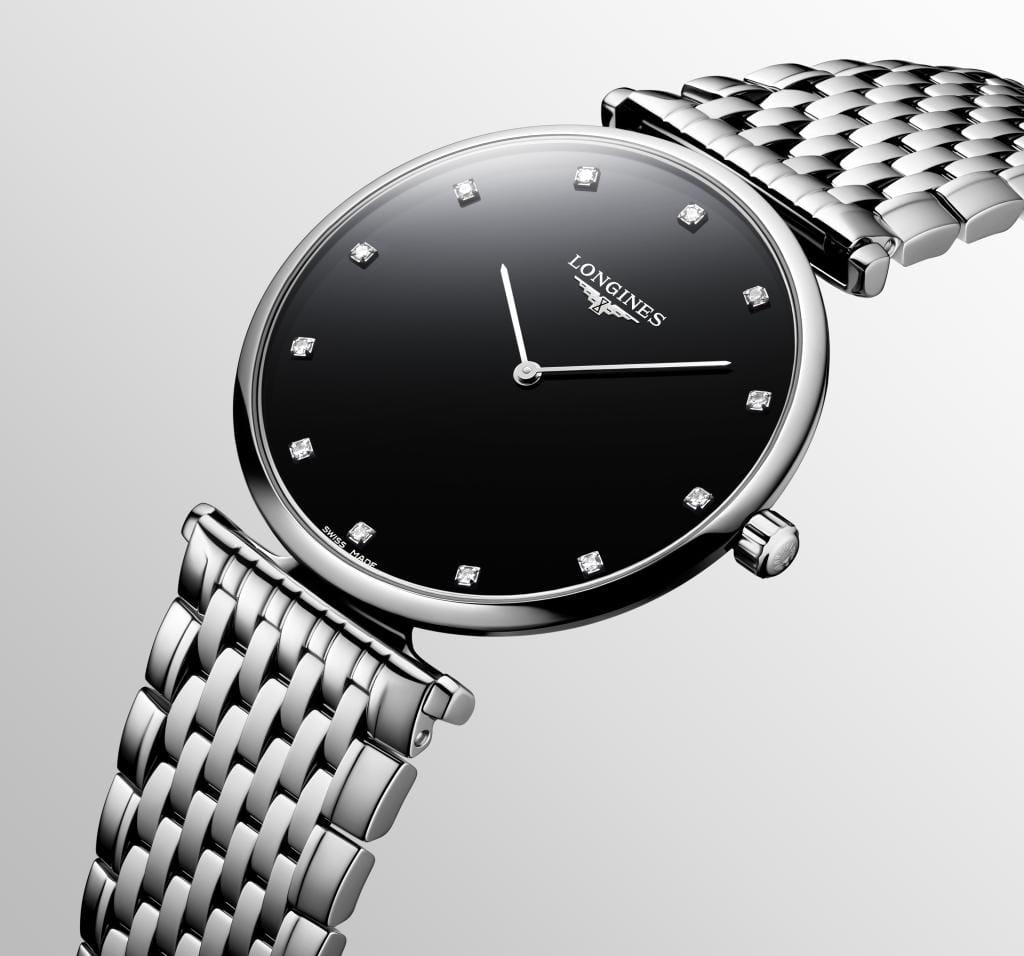 Женские швейцарские часы Longines La Grande Classique L4.866.4.58.6, кварцевый механизм с высокой точностью. Сапфировое стеклоСапфировое стеклоПрочный и надёжный материал из кристалла сапфира синтетического происхождения, характеризующийся особой твёрдостью и устойчивостью к царапинам и повреждениям. устойчивое к появлению царапин, обладающее высокой прозрачностью. Корпус часов изготовлен из стали. Циферблат с 12 бриллиантами группы Top Wesselton VS-SI общим весом 0.081 карата. Класс водозащиты: 30 метров, позволит защитить корпус от случайных брызг или капель дождя. Стальной браслет на застёжке-бабочке с кнопкамиЗастёжка "бабочка"Такой вид застёжки дополняется предохранителями, помогающими избежать случайного раскрытия браслета. Обладают изящным исполнением. .