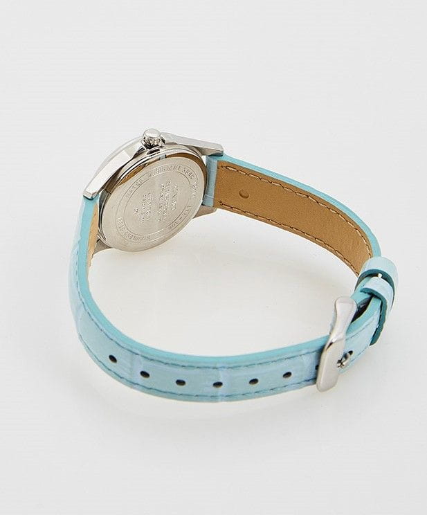 Наручные часы в классическом стиле подойдут в качестве элегантного и полезного аксессуара на любой случай жизни. Аккуратный круглый корпус выполнен из нержавеющей стали. Кожаный ремешок нежно-голубого цвета будет элегантно обрамлять запястье и подчеркнет женственность обладательницы аксессуара. Полезной особенностью часов является отображение текущей даты на дисплее. Подсветка NeobriteПодсветка NeobriteИспользование светонакопительных составов на основе сульфида цинка или алюмината стронция, яркий свет можно наблюдать на протяжении 6-10 часов после «зарядки» часов около источника света. позволяет аксессуару длительно светиться даже после непродолжительного нахождения на свету. Тип механизма - кварцевый. Батарейка имеет большой срок службы размером в 10 лет. Водонепроницаемость часов равна 5 Барам.
