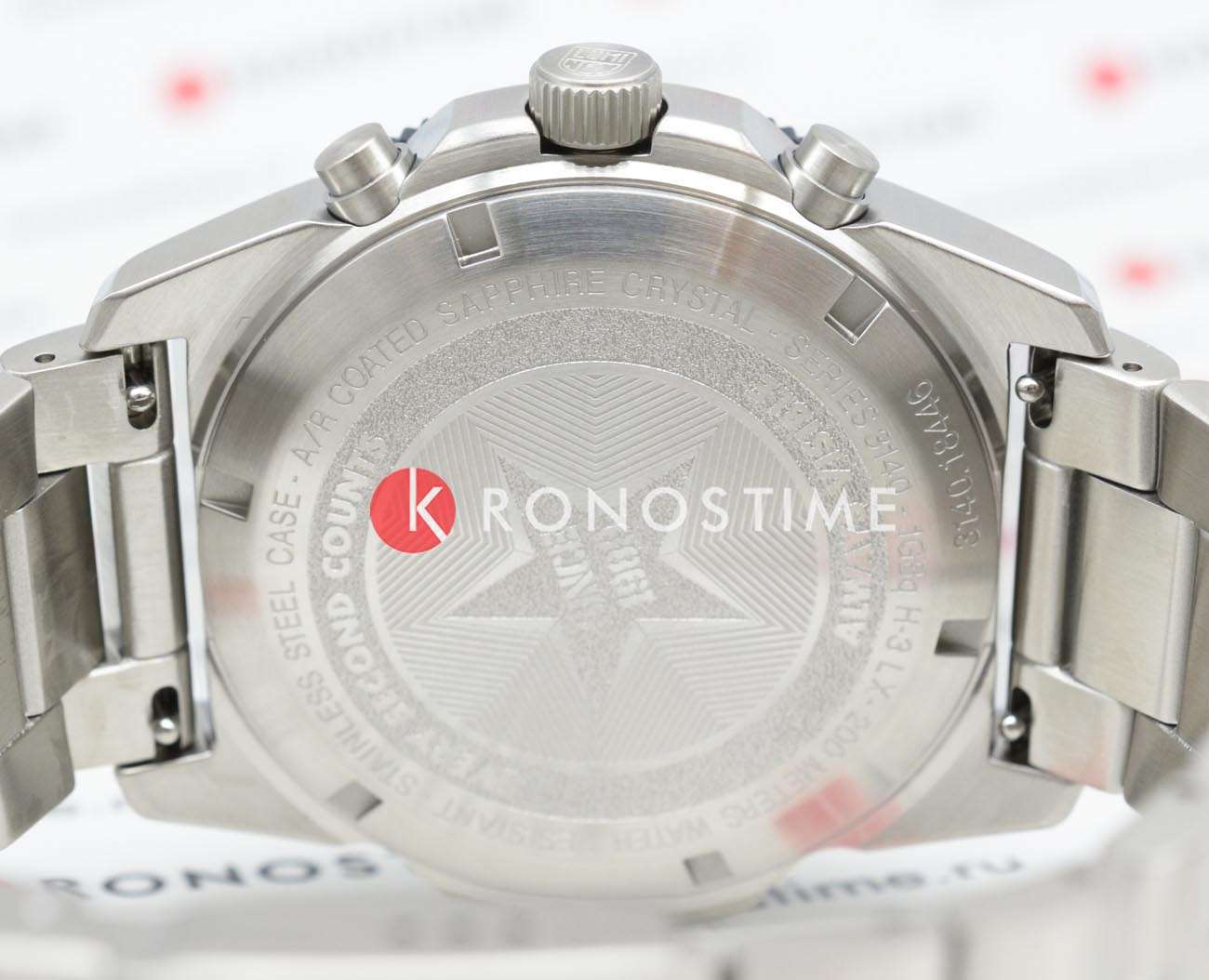 Мужские наручные часы-хронографХронографФункция позволяет измерять отрезки времени с особой точностью: часы, минуты, секунды. Верным признаком хронографа является наличие на циферблате 3 дополнительных окошек-счётчиков. Luminox XS.3144 из коллекции Pacific Diver сочетают в себе спортивный дизайн и надежность швейцарского качества . Модель обладает круглым корпусом диаметром 44 мм, изготовленным из нержавеющей стали с PVD-покрытиемPVDУльтратонкое покрытие наносится в технике вакуумного напыления, сочетает в себе нитрид титана особой прочности со слоем золота или оксида хрома. Несёт в себе декоративную или защитную функцию., что обеспечивает высокую устойчивость к внешним воздействиям и долговечность . Циферблат черного цвета украшен контрастными метками и стрелками с люминесцентным покрытиемЛюминесцентное покрытиеПозволяет считывать показания времени в темноте. Производители наносят на стрелки, часовые индексы, безель или поверхность циферблата светонакопительный состав, дающий холодное свечение., гарантирующим постоянную видимость времени даже в условиях низкой освещенности благодаря системе LLTLLTLLT — это автономный механизм подсветки, основанный на использовании микроскопических газонаполненных элементов. Специальные герметичные капсулы из боросиликатного стекла, интегрированные в циферблат, генерируют свечение без необходимости подключения к внешним источникам энергии. Для их работы не требуется ни дополнительный свет, ни механическое воздействие (например, нажатие кнопки). Свечение возникает благодаря химическому процессу: реакция между тритием, заключенным в капсулах, и люминофорным покрытием создает стабильное автономное освещение. Технология обеспечивает энергетическую независимость и долговечность подсветки. (микрогазовые огни) . Часы оснащены кварцевым механизмом швейцарского производства Ronda 515, обеспечивающим точность хода ±15 секунд в месяц . Защиту циферблата обеспечивает прочное сапфировое стеклоСапфировое стеклоПрочный и надёжный материал из кристалла сапфира синтетического происхождения, характеризующийся особой твёрдостью и устойчивостью к царапинам и повреждениям. с антибликовым покрытиемАнтибликовое покрытиеСлой оксида металла в 0,13-0,3 микрон, благодаря которому стекло часов не бликует и не отражает свет. Антибликовое покрытие уменьшает отражение света в 10 раз, обеспечивая отличную читаемость показателей циферблата., устойчивое к царапинам и механическим повреждениям . Водонепроницаемость модели достигает 20 атмосфер (200 метров), что делает их подходящими для плавания и активного отдыха на воде, включая дайвинг . Модель также оснащена безелемБезельВнешний ободок, закрепляющий стекло. В спортивных часах так называется поворотное кольцо с делениями на циферблате, выполняет роль таймера – замеряет отрезки времени на шкале. Неподвижный безель – элемент декора. Однонаправленно вращающийся безель на дайверских часах позволяет фиксировать моменты погружения и выныривания на поверхность. с односторонним вращением, что добавляет функциональности при использовании в водных условиях . Стальной браслет на раскладной застёжкеРаскладная застёжкаТакой тип застёжки используется только на браслетах из металла. Она никогда не раскрывается полностью, происходит разделение на 2 и более частей.