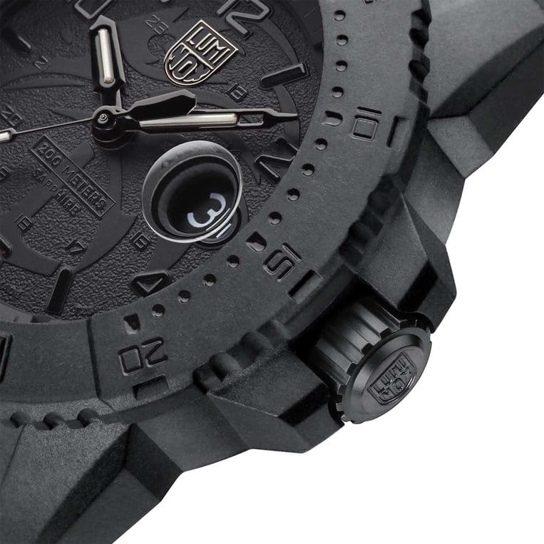 Швейцарские кварцевые часы Luminox XS.3601.BO.NSF идеально сочетают в себе современный стиль и надежность. Благодаря корпусу из пластика, усиленного прессованным карбономКарбонОт «carbon», «carbone» - углерод, углепластик - полимерный композиционный материал из переплетённых под определенным углом между собой нитей углеродного волокна, применяется для изготовления лёгких, но прочных деталей. В часах часто используют для украшения циферблатов и ремешков. Так же карбон используется в изготовлении корпусов. Такие корпуса обладают антикоррозионным свойством, не поддаются электромагнитному излучению, обладают повышенной прочностью и противоударностью., они отличаются прочностью и малым весом. Черный циферблат подчеркивает спортивный дизайн модели, а полиуретановый ремешок с классической застежкой обеспечивает комфорт при носке. Часы обладают водозащитой на глубине до 200 метров, что делает их идеальным выбором для любителей водных видов спорта. LLTLLTLLT — это автономный механизм подсветки, основанный на использовании микроскопических газонаполненных элементов. Специальные герметичные капсулы из боросиликатного стекла, интегрированные в циферблат, генерируют свечение без необходимости подключения к внешним источникам энергии. Для их работы не требуется ни дополнительный свет, ни механическое воздействие (например, нажатие кнопки). Свечение возникает благодаря химическому процессу: реакция между тритием, заключенным в капсулах, и люминофорным покрытием создает стабильное автономное освещение. Технология обеспечивает энергетическую независимость и долговечность подсветки.-подсветка гарантирует отличную видимость в темное время суток, а сапфировое стеклоСапфировое стеклоПрочный и надёжный материал из кристалла сапфира синтетического происхождения, характеризующийся особой твёрдостью и устойчивостью к царапинам и повреждениям. с антибликовым покрытиемАнтибликовое покрытиеСлой оксида металла в 0,13-0,3 микрон, благодаря которому стекло часов не бликует и не отражает свет. Антибликовое покрытие уменьшает отражение света в 10 раз, обеспечивая отличную читаемость показателей циферблата. защищает от царапин и обеспечивает четкость отображения. Модель оснащена функцией календаря с окошком даты, дополненным увеличительным стеклом для удобства использования. Часы поддерживают 12-ти и 24-х часовой формат времени, а вращающийся в одном направлении безельБезельВнешний ободок, закрепляющий стекло. В спортивных часах так называется поворотное кольцо с делениями на циферблате, выполняет роль таймера – замеряет отрезки времени на шкале. Неподвижный безель – элемент декора. Однонаправленно вращающийся безель на дайверских часах позволяет фиксировать моменты погружения и выныривания на поверхность. позволяет отслеживать время погружения или других активностей. Задняя крышка и заводная головка выполнены из стали, что добавляет дополнительную прочность конструкции. Заводная головка с защитой предотвращает случайное изменение времени. Благодаря диаметру в 45 мм и толщине 14 мм, эти часы обладают внушительным и привлекательным внешним видом.