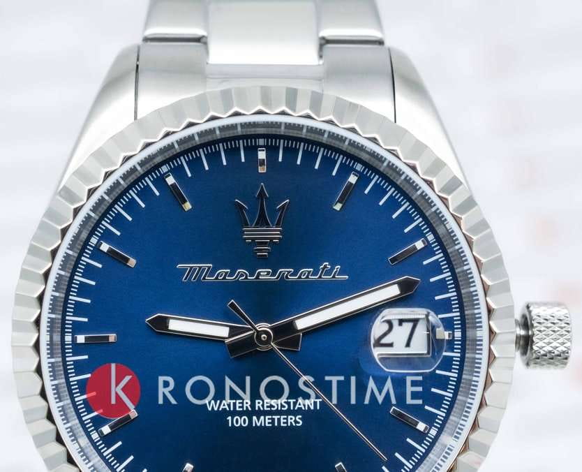 Механические часы Maserati R8853100029 представляют собой элегантное сочетание итальянской эстетики и технического совершенства. Корпус из нержавеющей стали диаметром 43 мм подчеркивает современный стиль. Минеральное стеклоМинеральное стеклоМинеральное стекло представляет собой искусственно выращенный минерал кварца. Такое стекло отличается особой устойчивостью к повреждениям и царапинам. Уступает по некоторым качествам сапфировому стеклу. защищает циферблат. Стальной браслет на раскладной застёжкеРаскладная застёжкаТакой тип застёжки используется только на браслетах из металла. Она никогда не раскрывается полностью, происходит разделение на 2 и более частей. Раскладывающая застёжка снизит вероятность потери часов к минимуму. с системой блокировки не только обеспечивает комфортное ношение, но и придаёт аксессуару дополнительную элегантность, подчёркивая его современный стиль. Метки в виде штрихов. Окошко даты с увеличительным стеклом находится в положении 3 часа. Граненый безель. Завинчивающаяся задняя крышка и заводная головка. Браслет с раскладывающейся застежкой.