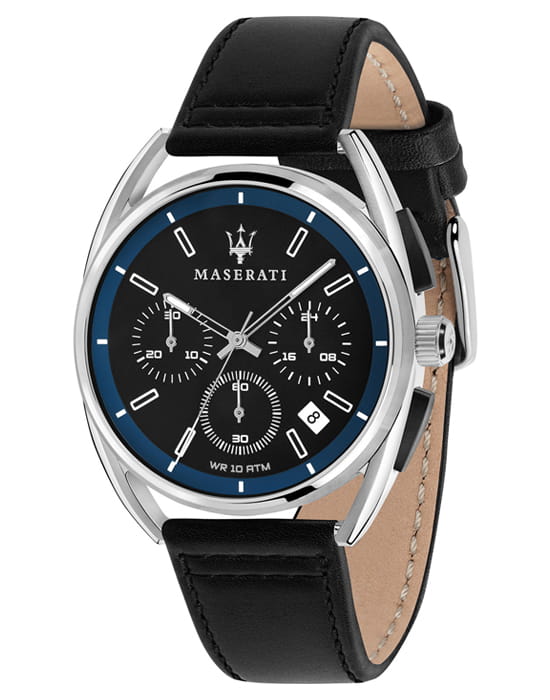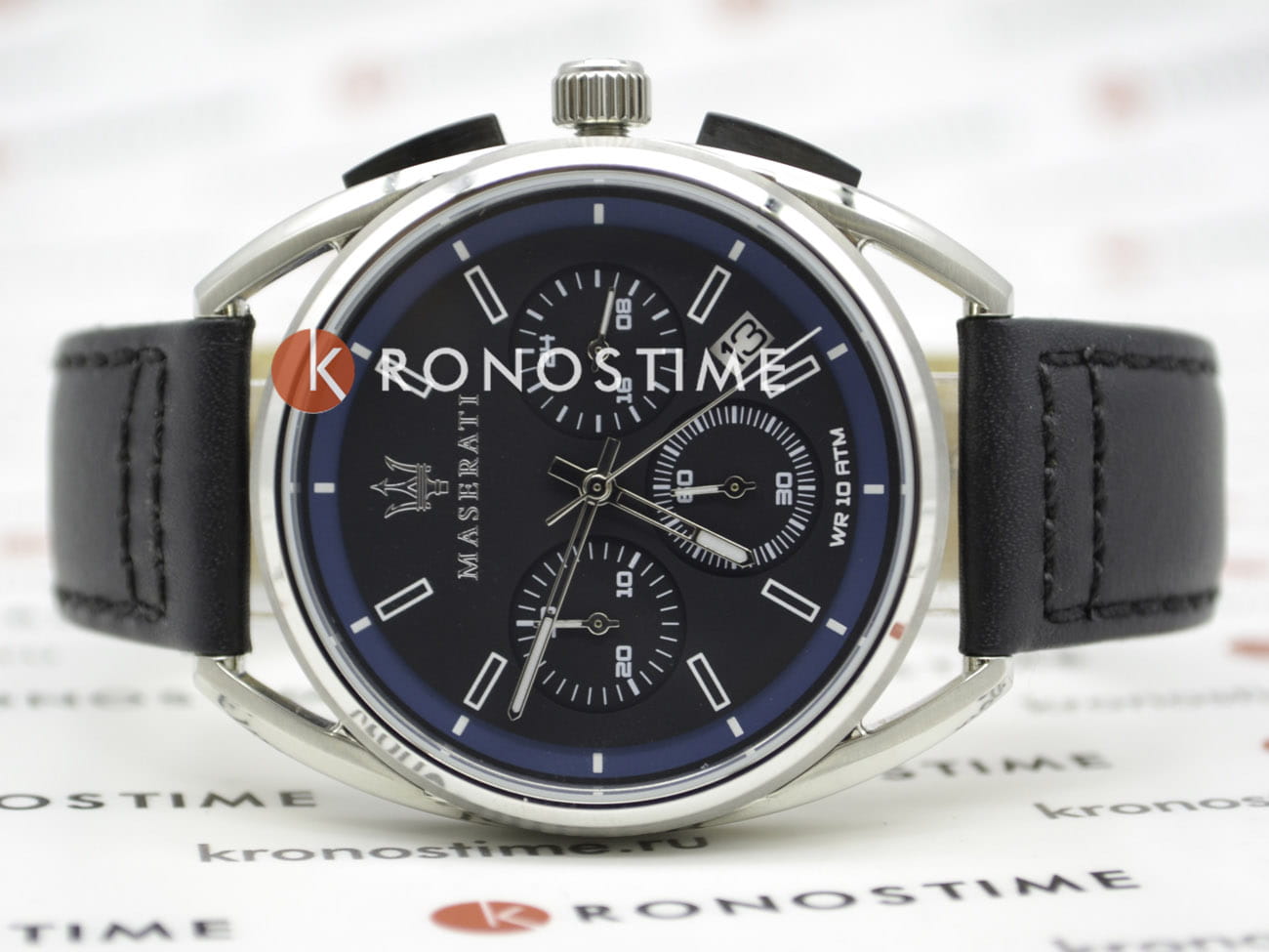 Мужские итальянские часы c хронографомХронографФункция позволяет измерять отрезки времени с особой точностью: часы, минуты, секунды. Верным признаком хронографа является наличие на циферблате 3 дополнительных окошек-счётчиков. Maserati Trimarano R8871632001, кварцевый механизм с высокой точностью. Класс водозащиты: 100 метров, позволит плавать, нырять и заниматься другими водными видами спорта. Корпус часов изготовлен из стали. Стрелки с люминесцентным покрытиемЛюминесцентное покрытиеПозволяет считывать показания времени в темноте. Производители наносят на стрелки, часовые индексы, безель или поверхность циферблата светонакопительный состав, дающий холодное свечение..