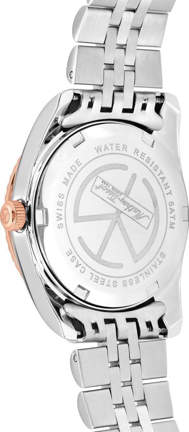 Женские кварцевые часы Mathey-Tissot Rolly D810RA — это стильное сочетание элегантности и современного дизайна. Изящный корпус выполнен из нержавеющей стали, диаметром 30 мм, что придаст образу женственности и романтизма. Изысканный циферблат с метками в виде точек придает модели особый блеск. Циферблат защищен минеральным стекломМинеральное стеклоМинеральное стекло представляет собой искусственно выращенный минерал кварца. Такое стекло отличается особой устойчивостью к повреждениям и царапинам. Уступает по некоторым качествам сапфировому стеклу., обеспечивающий устойчивость к царапинам. Стрелки с люминесцентным покрытиемЛюминесцентное покрытиеПозволяет считывать показания времени в темноте. Производители наносят на стрелки, часовые индексы, безель или поверхность циферблата светонакопительный состав, дающий холодное свечение.. Рифленый безельБезельВнешний ободок, закрепляющий стекло. В спортивных часах так называется поворотное кольцо с делениями на циферблате, выполняет роль таймера – замеряет отрезки времени на шкале. Неподвижный безель – элемент декора. Однонаправленно вращающийся безель на дайверских часах позволяет фиксировать моменты погружения и выныривания на поверхность. с PVD-покрытиемPVDУльтратонкое покрытие наносится в технике вакуумного напыления, сочетает в себе нитрид титана особой прочности со слоем золота или оксида хрома. Несёт в себе декоративную или защитную функцию. цвета розового золота. Циферблат украшен кристаллами. Окошко даты находится в положении 3 часа. Часы оснащены надежным кварцевым механизмом. Стальной браслет с частичным PVD-покрытиемPVDУльтратонкое покрытие наносится в технике вакуумного напыления, сочетает в себе нитрид титана особой прочности со слоем золота или оксида хрома. Несёт в себе декоративную или защитную функцию. на раскладной застёжкеРаскладная застёжкаТакой тип застёжки используется только на браслетах из металла. Она никогда не раскрывается полностью, происходит разделение на 2 и более частей. Раскладывающая застёжка снизит вероятность потери часов к минимуму., гарантирует комфортное и безопасное ношение. Класс водозащиты: 50 метров позволит защитить корпус от случайных брызг или капель дождя. Mathey-Tissot  — отличный выбор для тех, кто ценит утонченность и качество.