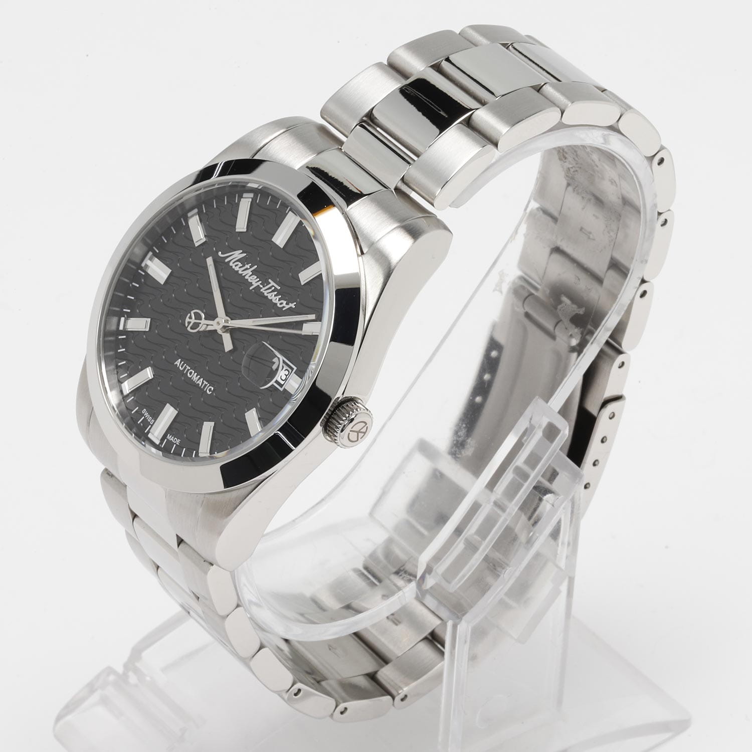 Мужские механические часы с автоподзаводом Mathey-Tissot Mathy H1450ATAN — это стильное сочетание элегантности и современного дизайна. Изящный корпус выполнен из нержавеющей стали, диаметром 42 мм, что придаст образу элегантности и надежности. Изысканный циферблат с метками в виде штрихов придает модели особый блеск. Циферблат защищен минеральным стекломМинеральное стеклоМинеральное стекло представляет собой искусственно выращенный минерал кварца. Такое стекло отличается особой устойчивостью к повреждениям и царапинам. Уступает по некоторым качествам сапфировому стеклу. с сапфировым покрытием, обеспечивает устойчивость к царапинам. Стрелки и метки с люминесцентным покрытиемЛюминесцентное покрытиеПозволяет считывать показания времени в темноте. Производители наносят на стрелки, часовые индексы, безель или поверхность циферблата светонакопительный состав, дающий холодное свечение.. Окошко даты находится в положении 3 часа. Стальной браслет на раскладной застёжке с фиксаторомРаскладная застёжкаТакой тип застёжки используется только на браслетах из металла. Она никогда не раскрывается полностью, происходит разделение на 2 и более частей. Раскладывающая застёжка снизит вероятность потери часов к минимуму., гарантирует комфортное и безопасное ношение. Рифленая заводная головка. Класс водозащиты: 50 метров позволит защитить корпус от случайных брызг или капель дождя. Mathey-Tissot — отличный выбор для тех, кто ценит утонченность и качество.