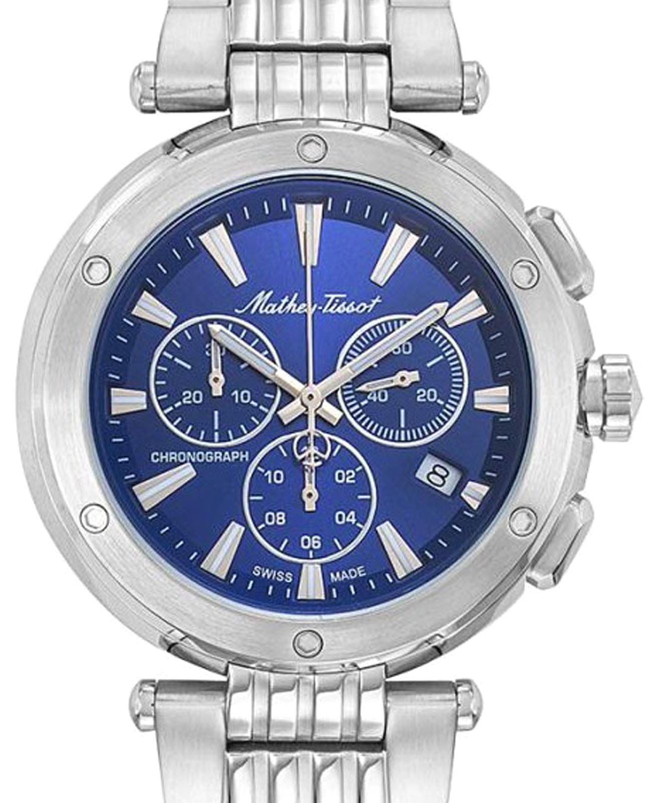 Мужские кварцевые часы-хронографХронографФункция позволяет измерять отрезки времени с особой точностью: часы, минуты, секунды. Верным признаком хронографа является наличие на циферблате 3 дополнительных окошек-счётчиков. Mathey-Tissot Neptune H912CHABU — это стильное сочетание элегантности и современного дизайна. Изящный корпус выполнен из нержавеющей стали серебристого цвета, диаметром 42 мм, что придаст образу элегантности и надежности. Изысканный циферблат с метками в виде штрихов придает модели особый блеск. Циферблат защищен минеральным стекломМинеральное стеклоМинеральное стекло представляет собой искусственно выращенный минерал кварца. Такое стекло отличается особой устойчивостью к повреждениям и царапинам. Уступает по некоторым качествам сапфировому стеклу. с сапфировым покрытием, обеспечивает устойчивость к царапинам. Стрелки и метки с люминесцентным покрытиемЛюминесцентное покрытиеПозволяет считывать показания времени в темноте. Производители наносят на стрелки, часовые индексы, безель или поверхность циферблата светонакопительный состав, дающий холодное свечение.. БезельБезельВнешний ободок, закрепляющий стекло. В спортивных часах так называется поворотное кольцо с делениями на циферблате, выполняет роль таймера – замеряет отрезки времени на шкале. Неподвижный безель – элемент декора. Однонаправленно вращающийся безель на дайверских часах позволяет фиксировать моменты погружения и выныривания на поверхность. украшен винтами. Окошко даты находится в положении 4 часа. Часы оснащены надежным кварцевым механизмом. Стальной браслет на застёжке-бабочке с кнопкамиЗастёжка "бабочка"Такой вид застёжки дополняется предохранителями, помогающими избежать случайного раскрытия браслета. Обладают изящным исполнением. , гарантирует комфортное и безопасное ношение. Класс водозащиты: 50 метров позволит защитить корпус от случайных брызг или капель дождя. Mathey-Tissot — отличный выбор для тех, кто ценит утонченность и качество.
